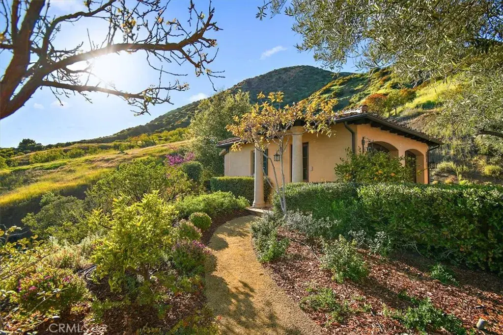 A truly rare opportunity inside the prestigious, gated, and historic Hermitage Ranch. The moment you enter this exceptional 47-acre estate, you feel the serenity and seclusion that make this property so special. This is a true retreat, a resort-like setting with two large homes, both perfectly positioned to take in the sweeping mountain and valley views that make Ojai such a magical place. The main house (2835 Hermitage) is 4466sqft 5bd/5ba or 4bd/office) and the guest house (2833 Hermitage) is 2396sft 3bd 3ba. The possibilities here are endless. There is an almost two-acre pad that could accommodate a professional-level equestrian facility, tennis or pickleball courts, or whatever vision you have for creating your dream compound. The property, which falls under the Williamson Act, is a perfect wedding venue and since it is not within the city limits of Ojai is governed by Ventura County rules as to other short term rental uses. Buyers should verify all potential uses directly with the County. A seasonal stream winds through the land, adding to the charm and peacefulness of the setting. Perched at the top of the private, 500-acre Hermitage Ranch, the main villa feels timeless and romantic, beautifully upgraded, thoughtfully maintained, and truly in immaculate condition. The photos are stunning, but seeing this property in person is absolutely breathtaking. Outdoor living is exceptional here, with expansive covered patios, an inviting outdoor kitchen, and a gorgeous pool area designed for entertaining or relaxing. There is also a detached workout studio, perfect for yoga, fitness, or quiet retreat time. You’re surrounded by lush avocado and citrus orchards, and the property includes 10 acres of avocado trees and 1.5 acres of Golden Nuggets. Residents enjoy direct access to extensive hiking trails leading into the Los Padres National Forest, truly a dream for nature lovers. A charming guest house, crafted with the same attention to detail as the main residence, adds even more flexibility and charm. Bordering State Park land, it’s common to see deer wandering through the orchards, adding to the peaceful, natural beauty of the setting. A piece of paradise tucked in the heart of the Ojai Valley. Ojai was just named one of the 11 Most Idyllic Small Towns in California by World Atlas and this property embodies exactly why. Don’t miss this one-of-a-kind opportunity to own an extraordinary estate that could offer significant tax advantages (check with CPA).