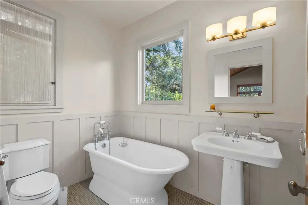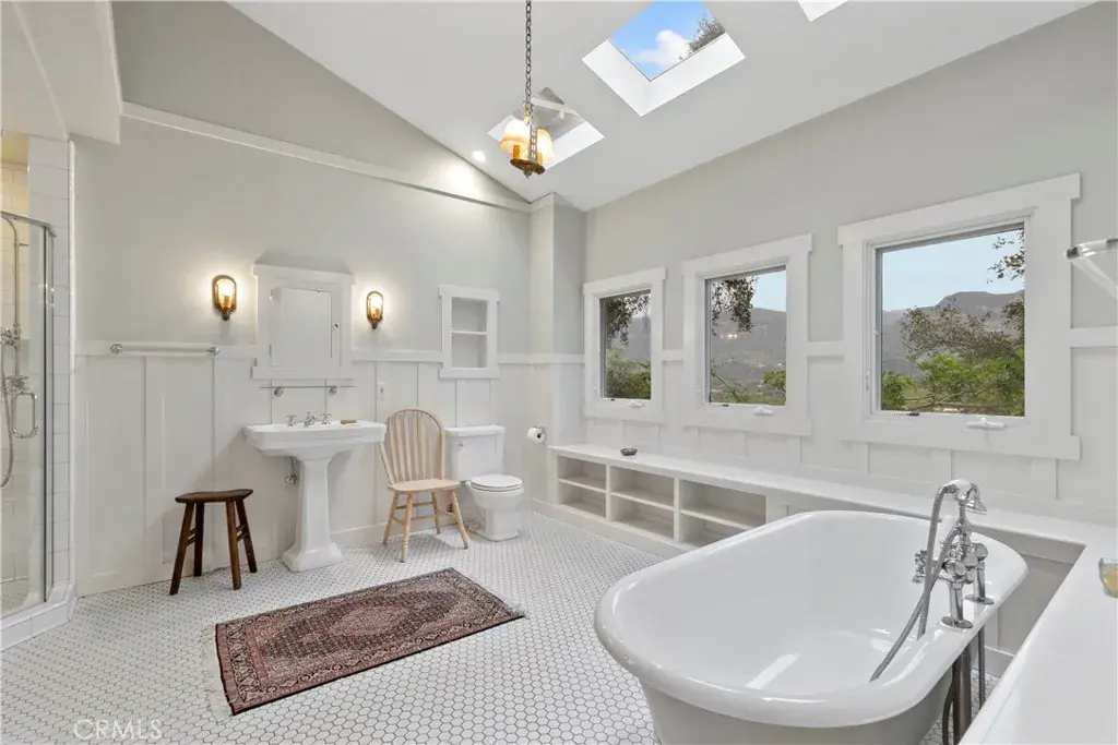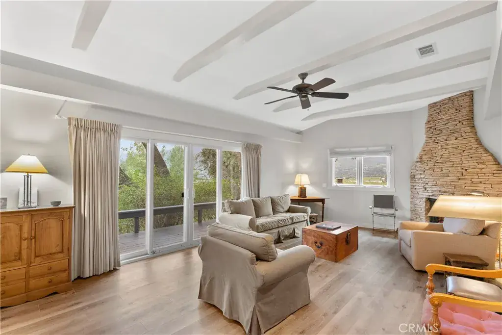Welcome to your private Ojai retreat! This beautiful property sits on 3 acres of serene land, offering expansive views of the surrounding valley and majestic mountains. The main home, over 3000 sq. ft. features 3 bedrooms and 3 bathrooms, designed to maximize natural light and showcase the stunning scenery. Sit and enjoy viewing the 100 year old oak off the main deck. Your very own private oasis with lush trees and landscaping. Interior boast hardwood floors with newer carpet in hall bedrooms. Fireplaces add the ambiance in the family room and dining room. Dining area has tall conical ceiling. The primary suite has a pot belly stove, walk in closet and wood floors. The primary bath has separate soaking tub and shower all updated. In addition, a 750 sq. ft. guest house built in 2012 provides a private 1-bedroom, 1-bath space—ideal for extended family, guests, rental income, or a private studio. With plenty of room to relax, entertain, and enjoy the Ojai lifestyle, this property combines comfort, functionality, and breathtaking beauty. The guest house has private driveway, covered parking and separate washer/dryer. Think of this as your home away from home with the most beautiful views of Ojai. Close to downtown Ojai with restaurants, shopping and wine tasing.