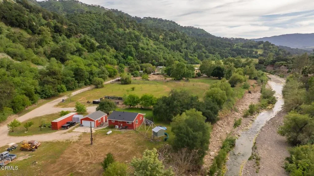Fraser Ranch is a rare and versatile offering delivering complete privacy and an exceptional opportunity to embrace a true homestead and farm lifestyle, as well as the opportunity for a multi-family compound and or income property. Tucked away in a serene setting, this property offers space, functionality, and the freedom to live sustainably while enjoying the beauty of country living. Located just minutes from downtown Ojai and only moments away from the beach, this ideal location allows you to truly live out in the country without actually being too far away from necessary amenities.Fraser Ranch encompasses 9.5 acres of mostly flat, usable land and features two residences. The primary home offers 2 bedrooms, 1 bathroom, approximately 940 square feet, a new roof, attached garage, spacious fenced yard, and a built-in play structure. The second home is a charming two-story residence with 2 bedrooms, 1 bathroom, approximately 1,000 square feet, its own septic system, and sweeping scenic views.Fraser Ranch is serviced by city water, septic systems, and public electricity. The ranch is well-equipped for agricultural and equestrian use, offering multiple open pastures with water access throughout, netted aviaries, and a family orchard. Equestrian amenities include multiple horse pastures and tack rooms, making this property ideal for horse enthusiasts, hobby farmers, or those seeking a working ranch lifestyle.Fraser Ranch is more than a property, it’s a lifestyle. A place where you can wake up to wide open skies, cultivate your own land, raise or rescue animals, host unforgettable gatherings, and create a legacy for generations to come. With its unique combination of income potential, multi-generational living, and fully usable acreage, this is truly a one of a kind opportunity located just minutes away from downtown Ojai. Properties offering this level of privacy, versatility, and self-sustaining potential are incredibly rare – making Fraser Ranch not only a remarkable place to live, but an exceptional investment in a peaceful way of life that is becoming increasingly hard to find.