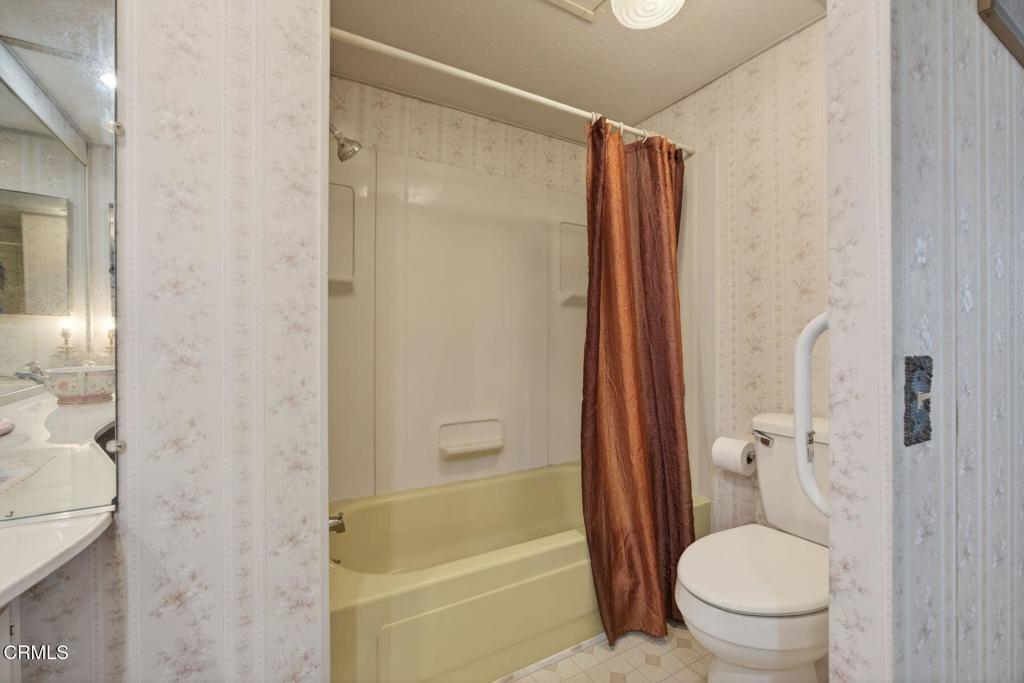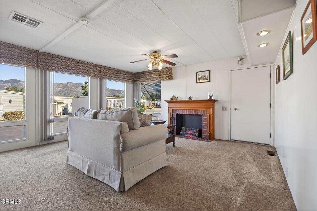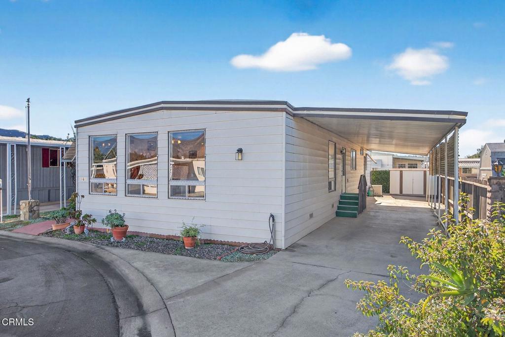 Peace, tranquility and beautiful mountain views define this lovely home! Perfectly situated at the end of a quiet cul-de-sac and just steps from the community clubhouse, pool and spa, this well-kept 2 bedroom, 2 bath home is waiting to welcome you. Enjoy expansive mountain views from the comfort of your living room equipped with a cozy electric fireplace. The kitchen has ample cabinet space, an island and built in breakfast counter. The roomy floorplan also features a family room, laundry room and primary bedroom with en suite bathroom. Enjoy the great outdoors on your private covered porch and there is room in the yard for those who enjoy a bit of gardening. The carport is large enough to fit 3 cars and the park offers RV parking. Located near shopping and restaurants, and adjacent to the Ojai trolley stop and the Ojai bike/walking trail. Home is in the desirable Ojai Villas gated 55+ community and offers a low monthly space rent of $869. Affordable senior living at its finest!