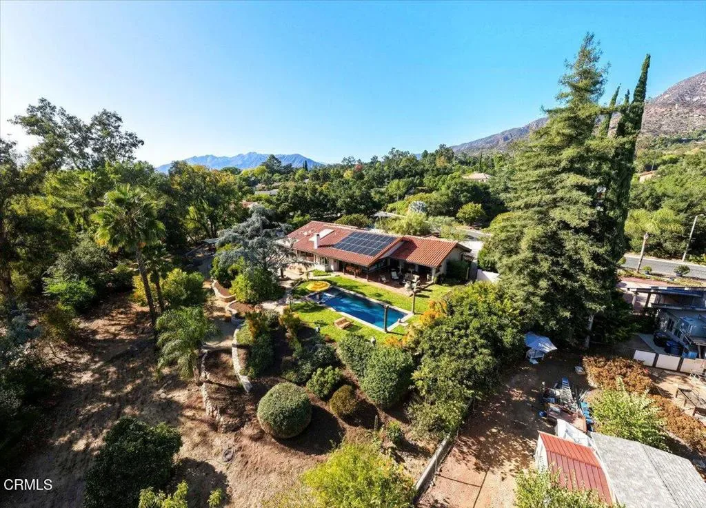 Impeccable Ojai retreat. Perfectly situated on a serene one-acre lot within walking distance to downtown Ojai, this stunning home offers the best of both worlds–peaceful privacy and close proximity to everything the valley has to offer. on the highly desirable Del Oro Drive, this property captures breathtaking Topa Topa mountain views from nearly every room. The home embraces true indoor-outdoor living, with large windows and doors that fill the space with natural light and frame the ever-changing colors of the Ojai sky. Inside, you’ll find three bedrooms and three bathrooms, including two finely crafted primary suites, each with walk-in closets and beautifully finished ensuite baths. At the heart of the home, the kitchen opens seamlessly to a cozy dining area featuring a fireplace and charming window seat–perfect for sunny Ojai mornings or crisp winter evenings. The adjoining living room offers wall-to-wall windows that perfectly frame the famed Pink Moment sunsets and morning sunrises, while the formal living room features vaulted ceilings, creating an ideal setting for entertaining or quiet movie nights. Every detail of this home has been thoughtfully curated, blending modern comfort with timeless Ojai charm. This home has been highly upgraded with features including, owned tesla solar and Powerwall, and EV charging station along with many more. Step outside to a backyard designed for relaxation and connection. A modern pool and spa where one can float and watch the mountains change colors with the day. Expansive outdoor living areas, surrounded by lush landscaping, Saltillo-tiled patios, and multiple lounging and dining spaces. Meander further through the property to discover a private yoga and meditation deck, the perfect spot to unwind and take in the valley’s tranquil energy. Experience the essence of Ojai living–where luxury, nature, and serenity come together in perfect harmony.