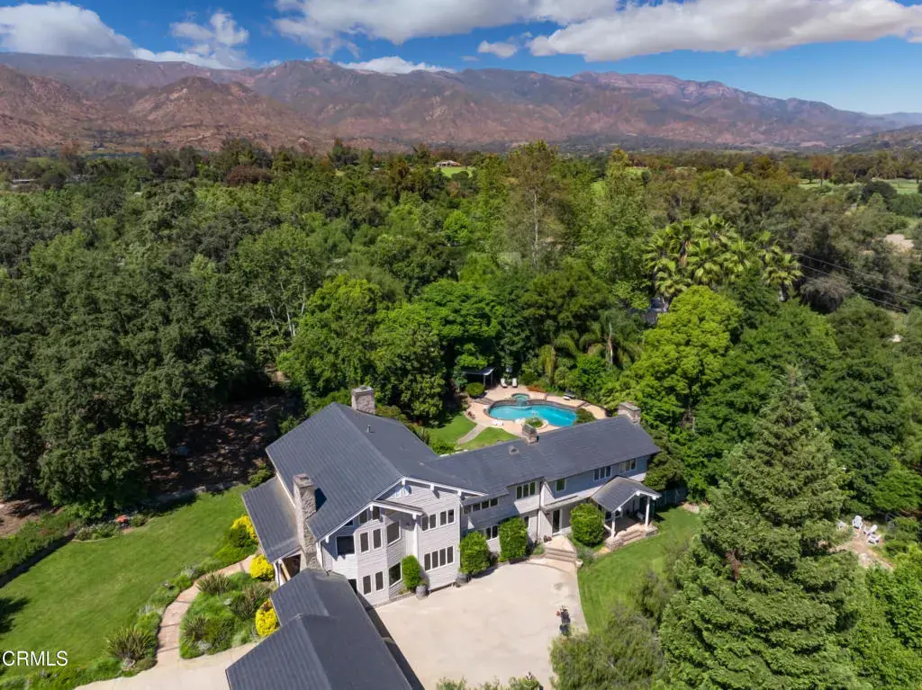 RemarksSpectacular 2024 remodel in prestigious Persimmon Hills Estate. A rare opportunity to acquire a gated 5.33-acre legacy property offering approximately 6,000 sq ft of refined living space, complemented by an exceptional 1,800 sq ft six-car garage and workshop. Tucked discreetly within the heart of downtown Ojai, the estate delivers an increasingly rare combination of true privacy, established landscaping, and immediate access to town amenities.The residence presents a timeless modern farmhouse aesthetic, thoughtfully curated by leading designers with an emphasis on enduring materials and architectural integrity. Features include Italian appliances, Brazilian stone, buck-skinned wood accents, marble slab showers, marble and travertine flooring, Douglas fir beams and detailing, cedar siding, and a distinctive all-copper roof, a testament to both craftsmanship and longevity. Smart-home technology, gated entry, and a secure private community provide comfort, discretion, and peace of mind.Designed to accommodate both elegant entertaining and everyday retreat, the home offers two primary suites, four fireplaces, a library, media room, living and family rooms, a wine cellar with tasting room, and a dedicated massage room. The expansive garage and workshop allow flexibility for collectors, hobbies, or future adaptation.Completed in 2026, a separate guest quarters or artist studio is privately positioned to capture elevated views, offering a secluded retreat ideal for guests, creative pursuits, or quiet work.The park-like grounds are supported by a private well and include a pool and spa, bocce court, volleyball court, multiple gathering areas and gazebos, a family orchard, and a nine-hole putting green with driving range. Extensive custom windows integrate the landscape into daily living, framing sweeping views of Topa Topa and Black Mountain.A rare and enduring Ojai estate offering privacy, craftsmanship, and location without compromise.