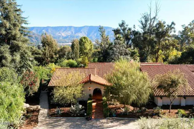Welcome to your Ojai retreat.Perfectly situated on a serene one-acre lot within walking distance to downtown Ojai, this stunning home offers the best of both worlds–peaceful privacy and close proximity to everything the valley has to offer.Located on the highly desirable Del Oro Drive, this property captures breathtaking Topa Topa mountain views from nearly every room. The home embraces true indoor-outdoor living, with large windows and doors that fill the space with natural light and frame the ever-changing colors of the Ojai sky.Inside, you’ll find three bedrooms and three bathrooms, including two upgraded primary suites, each with walk-in closets and beautifully finished en suite baths. At the heart of the home, the kitchen opens seamlessly to a cozy dining area featuring a fireplace and charming window seat–perfect for sunny Ojai mornings or crisp winter evenings.The adjoining living room offers wall-to-wall windows that perfectly frame the famed Pink Moment sunsets and morning sunrises, while the formal living room features vaulted ceilings, creating an ideal setting for entertaining or quiet movie nights.Every detail of this home has been thoughtfully curated–from custom-picked crystals embedded in the granite kitchen island to locally hand crafted RTK Spanish-style tile in the renovated bathrooms, blending modern comfort with timeless Ojai charm. This home has been highly upgraded with features including, owned tesla solar and Powerwall, and EV charging station along with many more. Step outside to a backyard designed for relaxation and connection. A modern pool and spa anchor the expansive outdoor living area, surrounded by lush landscaping, Saltillo-tiled patios, and multiple lounging and dining spaces. Meander further through the property to discover a private yoga and meditation deck, the perfect spot to unwind and take in the valley’s tranquil energy.Experience the essence of Ojai living–where luxury, nature, and serenity come together in perfect harmony.
