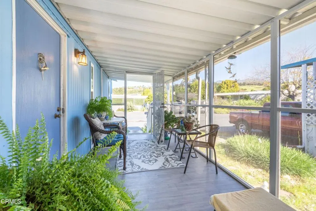Welcome to 1202 Loma Dr. #46, a well-maintained 2-bedroom, 2-bathroom home offering comfort, functionality, and stunning surroundings in the heart of Ojai. Updated vinyl flooring and windows create a bright interior, while the spacious primary suite features a walk-in closet and ample storage throughout.Enjoy the screened patio room with pet-friendly screen, perfect for year-round use, and a beautifully landscaped yard with mature fruiting plants including grapes, lemon, apricot, artichokes, and a miniature orange tree. Take in breathtaking mountain views and enjoy the iconic Ojai Pink Moment during select times of year. Additional features include all appliances included, swamp cooler, Aqua-Pure water filtration system, earthquake bracing, three storage sheds, and a location conveniently near guest parking. Ideally situated near the Ojai Bike Trail, Saddle Trails, and an Ojai Trolley stop, offering easy access to outdoor recreation and local amenities.