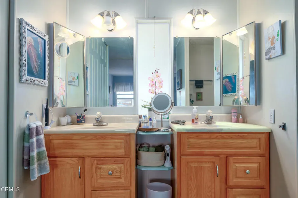 Welcome to 56 Don Antonio – a charming 2-bedroom, 2-bath mobile home nestled in the exclusive gated Ojai Villa 55+ community, offering stunning mountain views and a scenic walking path right behind the home. The open floor plan features vinyl-insulated windows, an updated kitchen, and a spacious primary suite with two closets and a dual-sink vanity. The guest bedroom enjoys its own separate bathroom for added privacy. Additional highlights include central A/C, a private backyard with breathtaking views, back gate access to RV storage, nearby bike trails, two large storage sheds, and more. This is Ojai living at its best!
