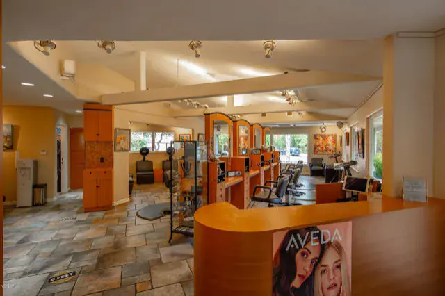 This beautiful downtown building is the location of Contempo Hair Salon, which has been in business for over 40 years. The property is zoned mixed use, so it can serve as a business/retail location as well as a residence. With large windows, high ceilings and an open floor plan, the interior feels light, spacious, and elegant. There is an existing kitchen, a separate spa room and a spacious half bath that could easily accommodate a shower. The exterior has beautiful landscaping with mature trees, a patio with a pergola, a covered porch and ample parking. It could be used as a turnkey salon with eight spacious stations or re-imagined as something entirely new. The building is extremely well-designed and well-built which would easily convert to many types of uses: a family residence, a mixed living/office space, an art studio or gallery, a retail space, a restaurant, or a day spa. The possibilities are endless. It is located in a very quiet location across from Libbey Park one block from the Post Office and Arcade on the border of tree-filled residential area. Let your imagination run wild and create something magnificent in Ojai.