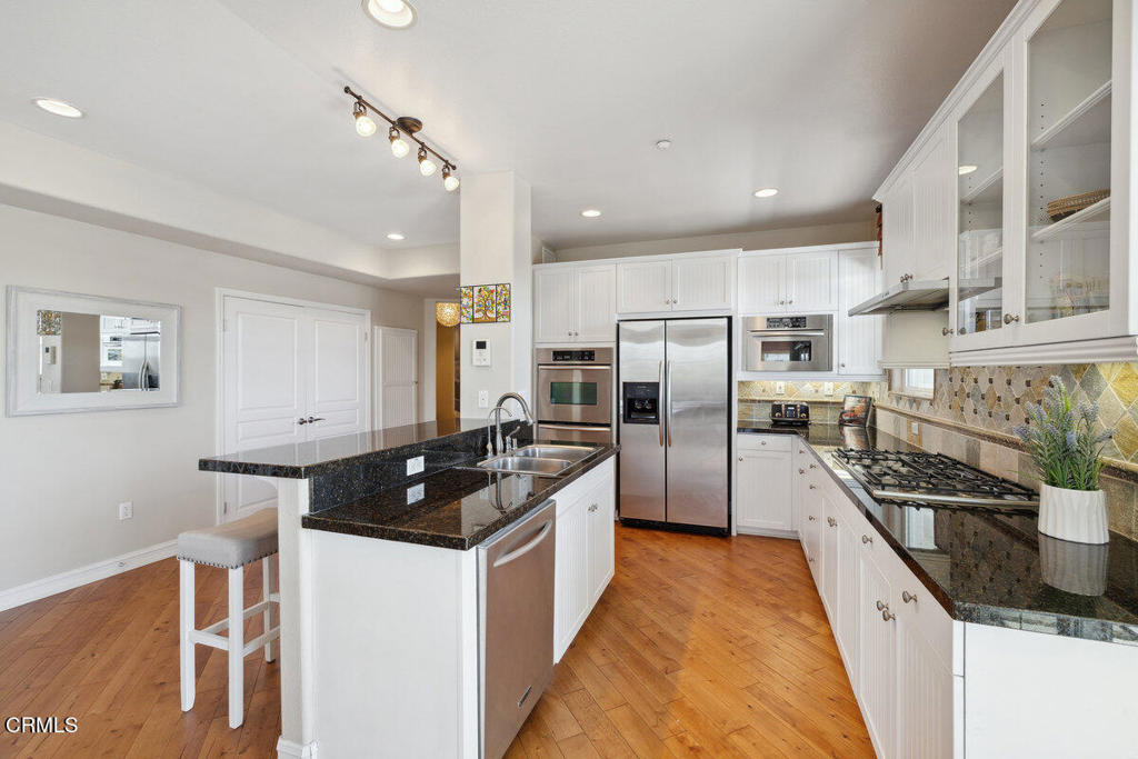 Coastal Elegance with a Front-Row Seat to the Harbor! Proudly, we present, one of the best water views in Port Marluna for you and your family to call your own! Welcome to your exclusive Marina retreat, where breathtaking water views meet refined coastal elegance. Nestled within the prestigious, enclave of Port Marluna at Seabridge, this pristine single-level residence offers a sophisticated blend of luxury, convenience, and unparalleled marina living. Step inside to enjoy wonderful marina views, custom window treatments, and premium flooring that complement the home’s airy, open-concept design. The chef’s kitchen is delightful, featuring sleek granite countertops, a full designer backsplash, an expansive island with breakfast bar, stainless steel appliances, a double oven, and ample storage–perfect for entertaining or enjoying quiet waterfront mornings or evenings. Indulge in the serenity of your private deck, where you can sip your morning coffee or unwind in the evening as boats, kayakers, and paddle boarders pass by. Whether you’re strolling along scenic harbor paths, dining at upscale waterfront restaurants, or setting sail for the Channel Islands, this is resort-style living at its finest. The world-class Seabridge community offers a wealth of amenities, including a state-of-the-art fitness center, a year-round heated pool and spa, an elegant clubhouse with a caterer’s kitchen, an outdoor barbecue lounge, and a tranquil yoga and meditation studio. Every detail has been designed for effortless luxury and relaxation. More than just a home, this is an invitation to an exclusive coastal lifestyle–one that many dream of, but few attain. Seize this rare opportunity to own a piece of paradise in the heart of the Channel Islands Harbor. Rarely does a property of this caliber come to market. Welcome home to Seabridge!
