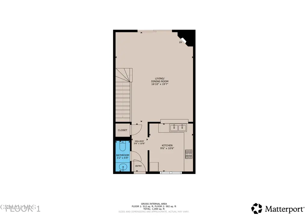 1 Full Bathroom, 1 Half Bathroom