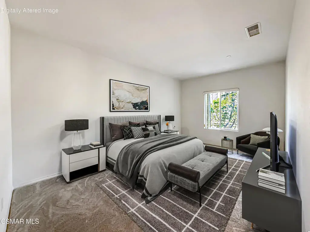 Welcome home to this beautifully refreshed 2-bedroom, 2-bath end-unit townhome offering nearly 1,400 sq. ft. of light-filled living in the highly desirable RiverPark community. Recently painted, featuring brand-new carpet, and a newly resealed patio, this home is truly move-in ready.Step inside to a spacious open-concept floor plan with abundant natural light and tile flooring throughout the main living areas. The inviting living room flows seamlessly into the kitchen and dining area, creating an ideal space for everyday living and entertaining. The kitchen has granite countertops, a breakfast bar, stainless steel appliances and a generous sized pantry. Off the dining area, enjoy a large balcony, perfect for morning coffee, relaxing, or BBQing. The expansive primary suite features a walk-in closet, dual-sink vanity, and a tub/shower combination. A spacious secondary bedroom and full guest bath offer comfort and flexibility for guests or a home office.Additional highlights include a large laundry room with a sink and storage, central A/C, and a two-car attached garage with driveway, plus a nicely sized yard. This complex is VA approved.RiverPark offers an exceptional lifestyle with nearby new schools, trails, parks, fountains, gazebos, BBQ areas, basketball and tennis courts, and a short distance to The Collection as well as convenient access to the 101 Freeway.