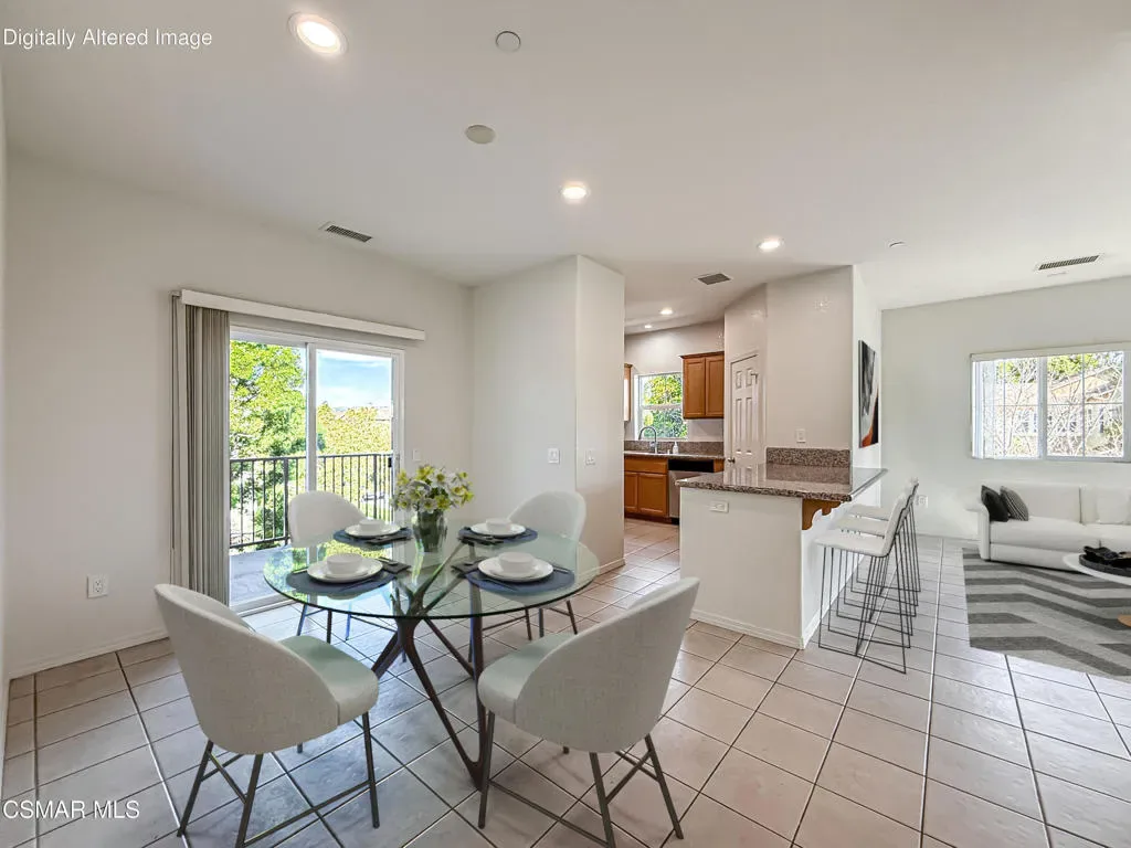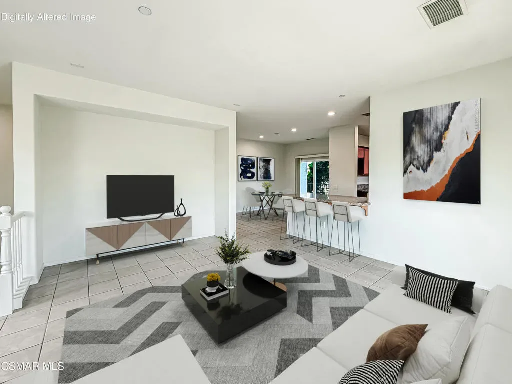 Welcome home to this beautifully refreshed 2-bedroom, 2-bath end-unit townhome offering nearly 1,400 sq. ft. of light-filled living in the highly desirable RiverPark community. Recently painted, featuring brand-new carpet, and a newly resealed patio, this home is truly move-in ready.Step inside to a spacious open-concept floor plan with abundant natural light and tile flooring throughout the main living areas. The inviting living room flows seamlessly into the kitchen and dining area, creating an ideal space for everyday living and entertaining. The kitchen has granite countertops, a breakfast bar, stainless steel appliances and a generous sized pantry. Off the dining area, enjoy a large balcony, perfect for morning coffee, relaxing, or BBQing. The expansive primary suite features a walk-in closet, dual-sink vanity, and a tub/shower combination. A spacious secondary bedroom and full guest bath offer comfort and flexibility for guests or a home office.Additional highlights include a large laundry room with a sink and storage, central A/C, and a two-car attached garage with driveway, plus a nicely sized yard. This complex is VA approved.RiverPark offers an exceptional lifestyle with nearby new schools, trails, parks, fountains, gazebos, BBQ areas, basketball and tennis courts, and a short distance to The Collection as well as convenient access to the 101 Freeway.