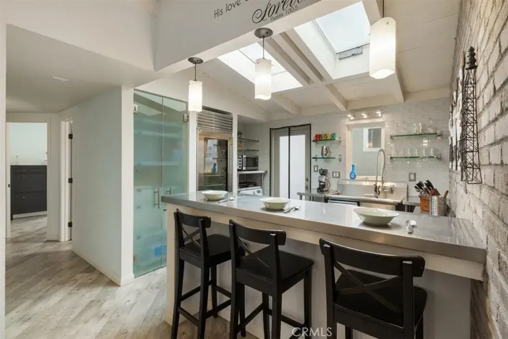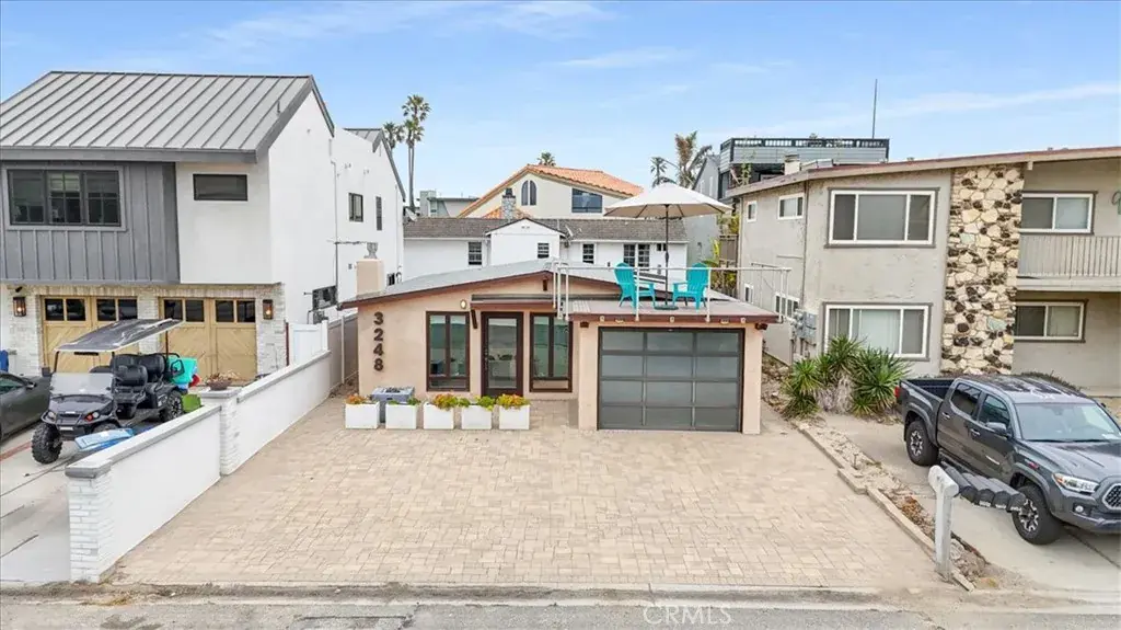Huge upside potential on this 2613′ sq ft lot, to go up and back for it’s Highest and Best use. Come see this charming, single family updated modern beach cottage with 3 bedroom and 1 bath, dual glazed windows, luxury vinyl plank flooring throughout the house, along with a peek-a-boo ocean view. The Kitchen is features stainless steel appliances, a built in refrigerator, a washer/dryer combo, along with two (2) Skylights for Natural light and some additional ventilation and a side door from the Kitchen for an additional entry / exit point. It also has a small enclosed courtyard backyard for privacy, a rooftop deck above the garage with a for stargazing or just relaxing. The front of the property had a large area done with pavers which can accommodate 3-4 cars. Property has a Golf Cart garage, large enough for all your toys, scooters, bicycles and / or hanging surfboards / kayaks. Come see what you are missing out on and make this your next home or even your 2nd home. Price includes all existing furniture. Will consider carrying paper for 2-3 years with 50% down.