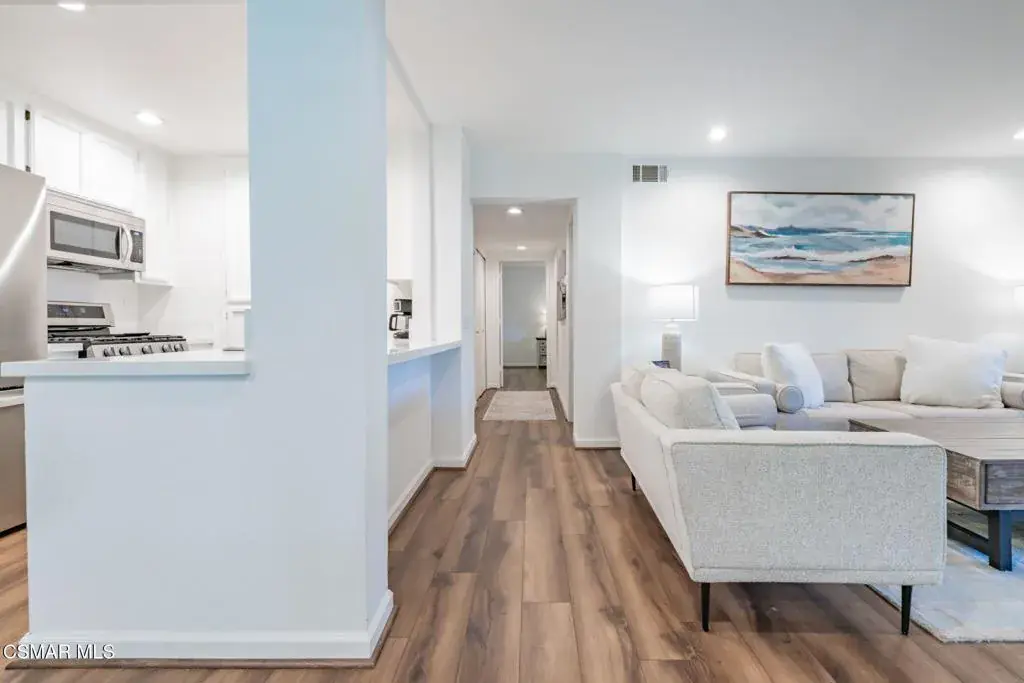 Experience coastal living at its finest in this beautifully updated single-story condo located within the exclusive gated community of The Colony at Oxnard Beach/Mandalay Beach. Offering the rare convenience of direct access from your private two-car garage, this home combines comfort, privacy, and effortless beachside style.Inside, the thoughtfully upgraded interior features durable wood-like flooring throughout, fresh interior paint, and elegant quartz countertops in both the kitchen and bathrooms. The light-filled living spaces flow seamlessly, highlighted by a cozy fireplace. Outside offers tranquil views of the lush greenbelt and mature trees beyond the dining area. The spacious primary suite offers a peaceful retreat with garden views and a beautifully enhanced ensuite featuring dual vanities and modern finishes. Both bathrooms showcase quality stone, tile, and marble details.Additional upgrades include newer kitchen and laundry appliances, updated plumbing and lighting fixtures, energy-efficient LED lighting with dimmers, and a smart garage door opener for added convenience. A generous pantry and abundant garage storage ensure everything has its place.Enjoy resort-style amenities including pools, spas, tennis, pickleball, racquetball courts, a fitness center, and clubhouse–all just moments from the sand in Oxnard. Spend weekends at the nearby Channel Islands Harbor, home to waterfront dining and a popular farmers market. This is your opportunity to enjoy the ultimate Southern California coastal lifestyle.