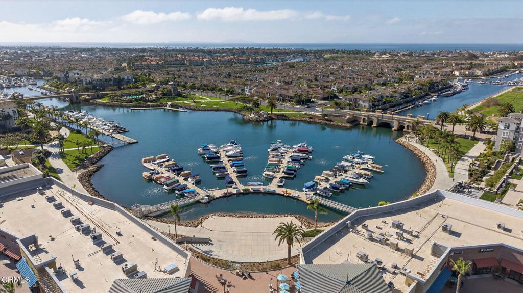 Welcome to Deckside Villas, attached single-family homes with community amenities. This well-designed plan showcases rich wood finishes with marble and stone surfaces. Two private courtyards provide space for entertaining, gardening, or relaxing. A garage with direct access from a courtyard patio and an excellent interior location within the community add to the appeal. Enter through a private gate to a spacious patio. Once inside the home, enjoy the open kitchen with multiple windows allowing for plenty of natural light. Marble counters and beautiful cabinetry frame the space. The laundry area is here for convenience. The kitchen door leads to the second patio with terrific sun exposure. The dining space and living room have soaring ceilings, which offer wonderful options to showcase artwork and lighting. The stacked-stone fireplace and wood mantel are also notable features. The thoughtful design continues to the main level primary suite, with double door entry and a spa-like bathroom. The primary bedroom opens to the courtyard. Upstairs are two bedrooms and an upgraded bathroom with a tub and shower combination. One bedroom has a west-facing window for coastal breezes and gorgeous sunsets. Ample storage is throughout, including a built-in dining area cabinet, a second level linen cabinet, a storage tower in the primary bath, a large closet beneath the stairs with organizers, shelving in the laundry area, and the full-size garage. Deckside Villas residents enjoy HOA amenities including tennis and pickleball courts, a pool and spa, and landscaped grounds. Seabridge Marina access is across the street, and Mandalay Shores beach is a few minutes by car or a scenic 20-minute walk through harborside and coastal neighborhoods. The marina also includes waterfront paths, dining and retail. There are nearby launches for stand-up paddleboarding and kayaking. A variety of yacht clubs and marinas offer docks for electric boats, sailboats, and powerboats, and there are several fishing locations and surf spots close by. The Channel Islands Harbor, known for its Sunday Farmers Market on land, and as the Gateway to the Channel Islands by sea, is 5 miles away. For shopping, nightlife and a music and cultural arts scene, Downtown Ventura is 10 miles way, while The Collection in RiverPark is 7 miles away. There are multiple golf courses within 15 min, and hiking trails from which to enjoy coastal and hillside views. Move in today, entertain tonight!
