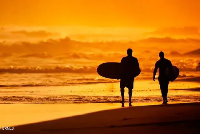 Welcome to Leilani Breeze House, a rare slice of paradise at Hollywood By The Sea, set on one of the three most beautiful stretches of beach in Ventura County. Enjoy rooftop island views, dazzling sunsets, and the Pacific Ocean just half a block away, creating a backdrop for memories that last a lifetime. Perfectly positioned above Channel Islands Harbor–gateway to Channel Islands National Park–and ideally located halfway between Malibu and Santa Barbara, this home places the best of the coast at your fingertips.Days are filled with wave play, kayaking, boating, paddle boarding, harbor cruises, visits to yacht clubs, wine tasting, championship golf, boutique shopping, and exceptional dining. This classic two-story beach house blends timeless coastal charm with extensive modern upgrades and generous living space.The home offers four exceptionally large bedrooms. The lower level features two spacious bedrooms with private guest quarters and a separate entrance–ideal for guests or multigenerational living. Upstairs, two oversized bedrooms share a beautifully appointed bathroom and open to an expansive rooftop deck designed for unforgettable entertaining, sunset gatherings, and star-filled evenings.The open living and dining area showcases vaulted ceilings with exposed wood beams, oversized glass windows, and sliding doors opening to a breezy balcony where ocean air flows freely. A raised brick fireplace with a rich wood mantle anchors the space, perfect for cozy nights after long beach days. The kitchen includes bar seating, ample cabinetry, stainless steel appliances, filtered water with dispenser, and a pass-through view to the balcony beyond.Additional highlights include an interior laundry and utility room ideal for sandy towels, a two-car garage with space for bikes and water toys, an oversized driveway with rare beachside guest parking, and a lockable electric vehicle charger. Extensive upgrades include high-efficiency double-pane windows and sliders, luxury plank flooring throughout, custom blinds, recessed and accent lighting with dimmers, ceiling fans in all bedrooms, a new gas fireplace, updated water heater, washer and gas dryer, motorized garage doors, exterior lighting, a built-in security system, keypad entry, and TVs with elevated electrical in every bedroom.Whether a full-time residence, vacation retreat, or investment opportunity, Leilani Breeze House delivers a lifestyle defined by sun, surf, and coastal living.