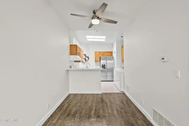 Discover modern coastal living in this beautifully upgraded, single-story condo located in one of Oxnard’s most desirable communities near Mandalay Beach. This move-in-ready home offers 2 bedrooms, 2 bathrooms, and approximately 945 sq. ft. of stylish, open living space designed for comfort and function.Step inside to find luxury vinyl plank flooring throughout, tile flooring in the bathrooms, and recessed lighting that adds a sleek, contemporary touch. The kitchen showcases quartz countertops, a breakfast bar, tile flooring, and ample cabinetry–combining modern elegance with everyday practicality.Enjoy upgraded bathrooms, double-pane windows with plantation shutters, and a bright skylight that fills the home with natural light. Every detail has been thoughtfully selected to create a fresh, modern atmosphere.All appliances are included–refrigerator, stove, microwave, dishwasher, washer, and dryer–making your move seamless and stress-free.Outside, relax under your covered patio featuring low-maintenance turf, ideal for soaking up Oxnard’s coastal breeze. The property includes a two-car garage plus ample community parking for added convenience. Residents also enjoy access to community amenities including a sparkling pool, perfect for enjoying sunny Southern California days.Located near shopping, dining, and local beaches, this home offers an effortless blend of modern design and coastal lifestyle. HOA dues are paid by the landlord and include water and trash services, so you can simply enjoy carefree living.