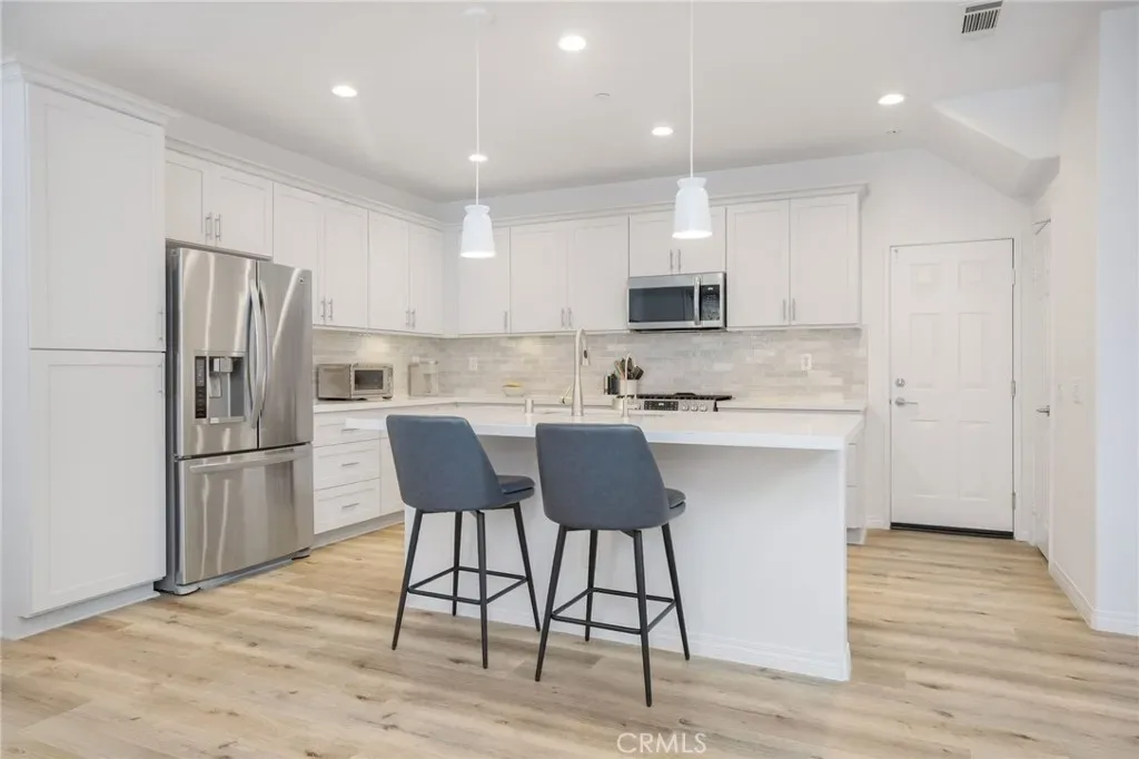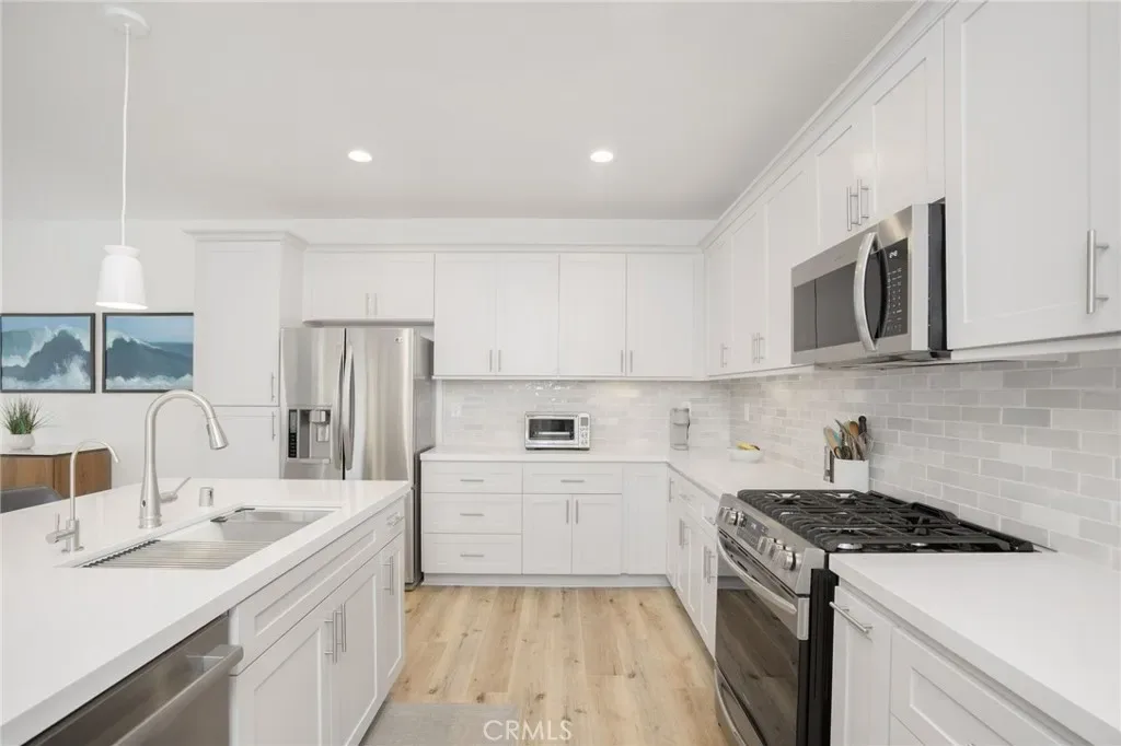 This tastefully remodeled Orbela condo offers more than just modern upgrades and timeless design; it provides a front-row seat to the best of California coastal living. Whether you are an avid surfer, a sunset enthusiast, or someone who thrives on the thrill of charter fishing, diving or whale watching, this property brings the very best of beachside activities right to your doorstep. As the largest floor plan, this premier end-unit is nestled in the best location within the development, tucked away in the back corner for increased privacy compared to interior units. Soaring ceilings grace the entryway & flood the open-concept main level with natural light. Custom wooden shutters offer both style & privacy, while a sleek electric fireplace adds a warm cozy vibe. Seamlessly integrated into this space is the reimagined chef’s kitchen equipped with premium quartz countertops, a subway tile backsplash, stainless steel appliances and a sprawling center island, making it the heartbeat of the home. The upper level is intelligently designed for modern living. A versatile, spacious loft separates the secondary bedrooms from the primary suite, providing an ideal footprint for a home office, theater or 4th bedroom. (Tax records reflects 4 bedrooms) All bathrooms have been remodeled but the primary ensuite boasts a massive walk-in shower wrapped in floor-to-ceiling designer porcelain tile, marble tile flooring, and features dual shower heads for a fully immersive experience. Other amenities of this turnkey residence include an upstairs laundry room with an LG washer & dryer, direct access 2-car garage, a gated patio, low HOA and easy access to the 101 & 126 freeways.