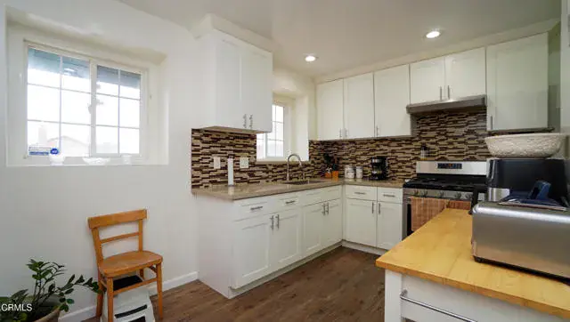 Great opportunity on this 4 bedroom, 2 bathroom, single story home for sale with an extended driveway and attached 2 car garage. Front entry leads in to the open living and dining rooms featuring a fireplace with mantle and floor to ceiling brick surround. The renovated kitchen includes recessed lighting, newer cabinetry, Quartz countertops, mosaic tile backsplash, stainless steel fixtures, stove/oven and laminate wood flooring. The spacious family room with exposed wood beams looks out to the backyard with avocado and other fruit trees. The main bedroom features dual closets, built-in shelving and drawers, along with a main en-suite bathroom with a large tile shower and mosaic accents. Down the hall are 3 additional bedrooms and a secondary bathroom with large tiled shower and mosaic accents. Additional features include a water softener and newer roof. Home is a short drive to shopping, nearby beaches and Channel Island Harbor.
