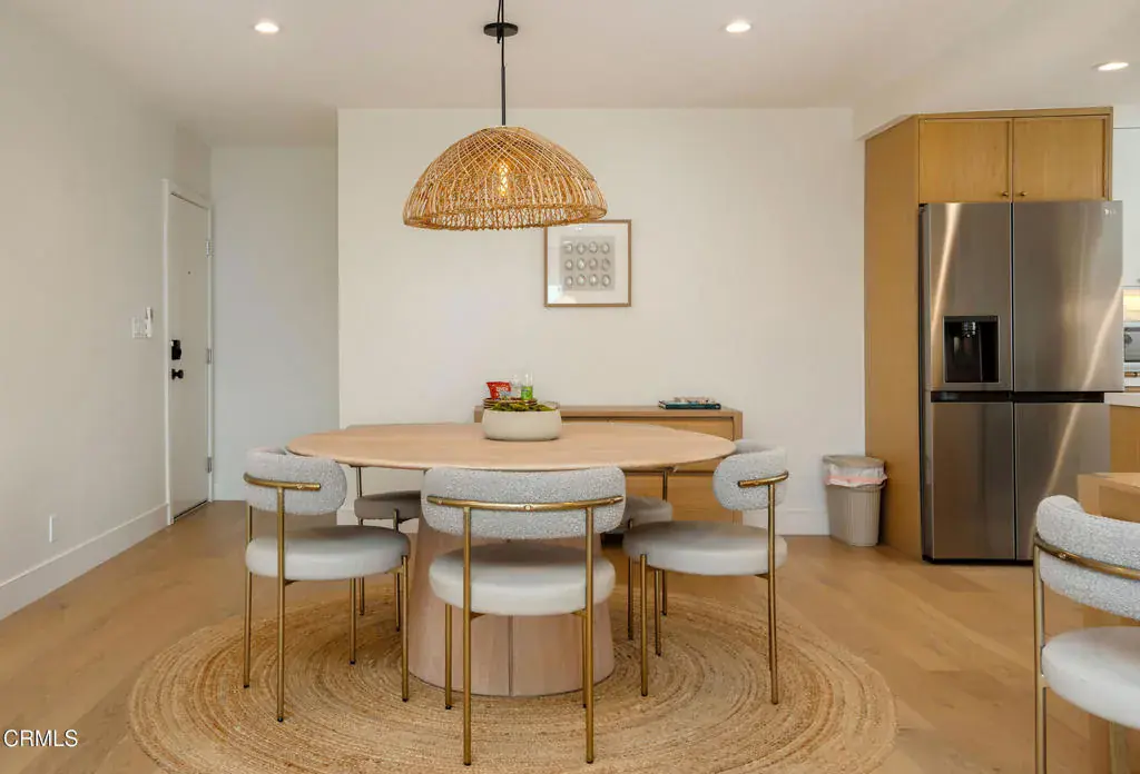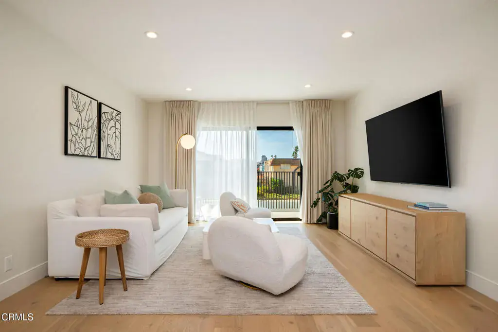 Refined Coastal Living – Mid-Century Charm Meets Modern Luxury, Just One Block from the Beach! Experience a rare opportunity to live full-time in a professionally redesigned mid-century residence just steps from the sand. This fully furnished 1-bedroom, 1-bath home is part of a quiet, boutique 6-unit building transformed into a stylish coastal retreat. Inside, a bright and open layout features designer-selected furnishings, high-end finishes, and a seamless blend of comfort and style. Large windows fill the space with natural light and ocean breezes, while a private balcony offers a peaceful view of the sparkling pool. The thoughtfully appointed kitchen, spa-inspired bath, in-unit washer and dryer, and air conditioning provide modern convenience, while the building’s shared pool invites resort-style relaxation. Located only one block from the beach, this residence is ideal for executive stays, corporate relocation, or anyone seeking a high-end coastal lifestyle. Offered at $3,800 per month with a 12-month lease.