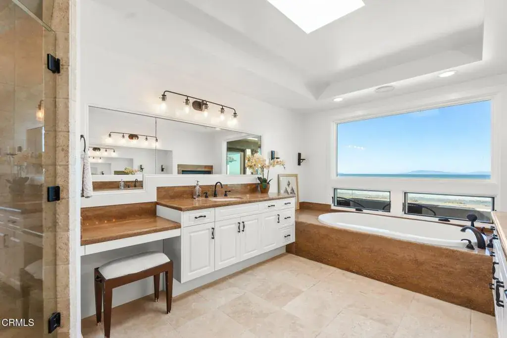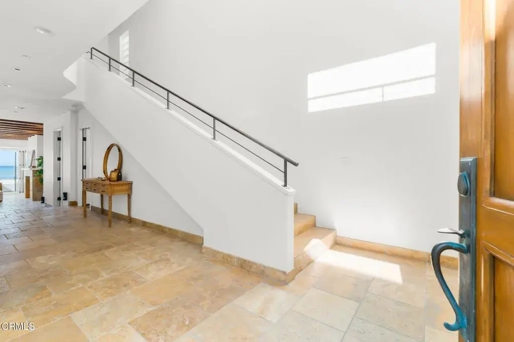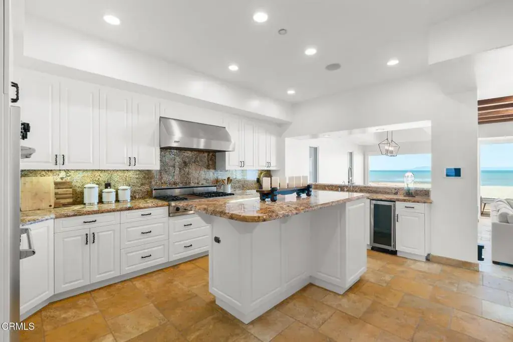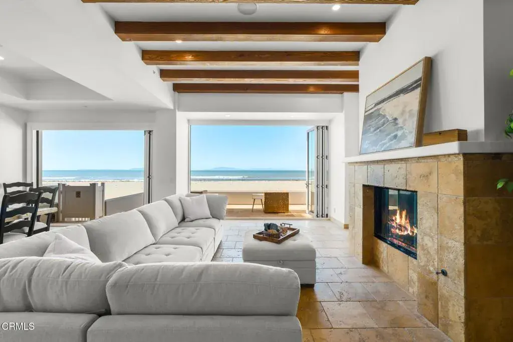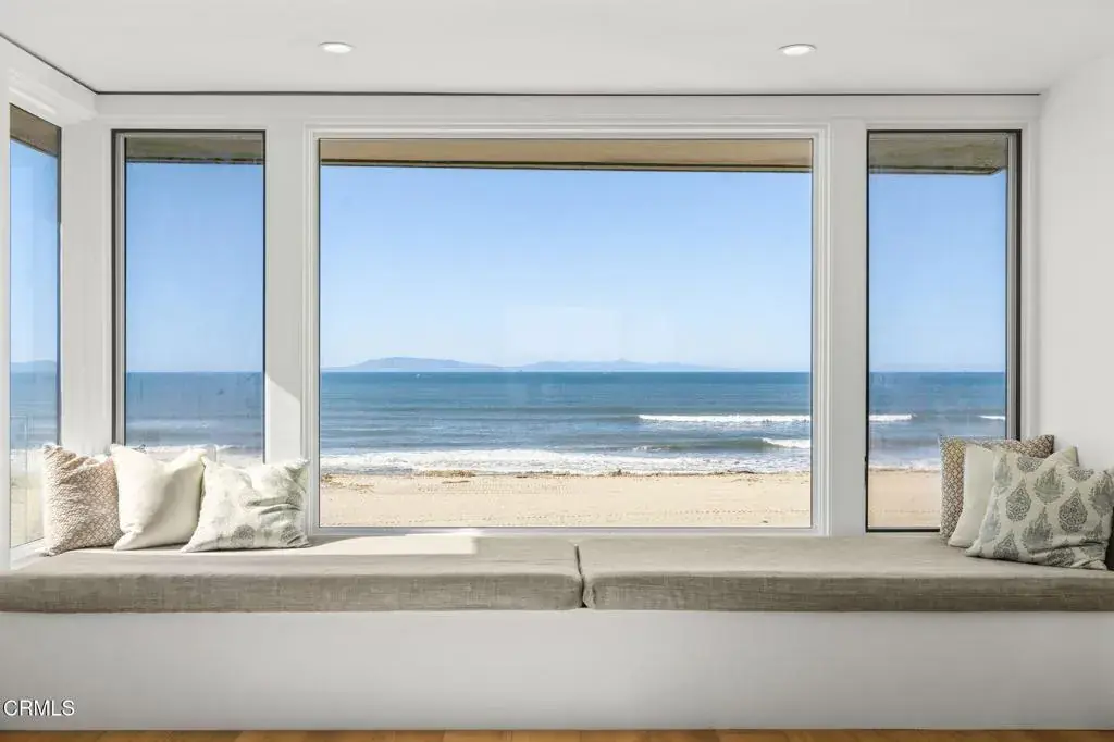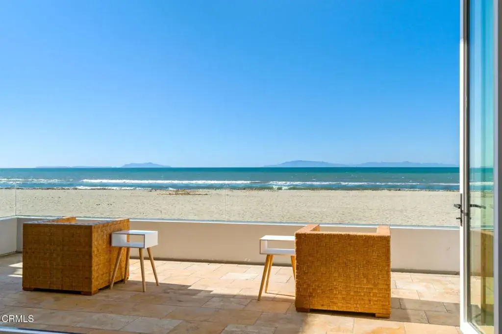 Welcome to your dream Beachfront house, perfectly nestled on the sands of beautiful Mandalay Beach. This gem is situated on a semi-private street, west of the main beachfront road, ensuring less car and foot traffic for a peaceful, beachy vibe. Positioned on a west-facing beach, the house offers breathtaking sunsets every evening. Enjoy panoramic 180-degree views of the ocean, islands, whitewater, and coastline, stretching across the Santa Barbara channel to the Channel Islands and the Ventura coastal foothills. Step into the gourmet kitchen, a chef’s paradise, featuring a center island, a 48-inch Viking cooktop, a Viking double oven, and a built-in Subzero refrigerator. The first level dazzles with a wall of windows that open fully to a spacious deck, providing direct access to the sand and creating an inviting indoor-outdoor living experience. The family room exudes coastal charm with high vaulted beamed ceilings and a cozy fireplace. This level also offers three bedrooms and three baths, along with a den off the kitchen that could serve as an optional sixth bedroom. The second level is dedicated to a generous primary suite, featuring a fireplace and a private deck. The primary bathroom is a sanctuary with a jetted tub, steam shower, fireplace, and, of course, stunning ocean views. For an unforgettable evening, head to the rooftop deck to marvel at the starry skies, making it the perfect spot to entertain and relax while savoring the refreshing ocean air.The home boasts 3-zone radiant heating and a rare 6-car garage, ensuring comfort and ample space. This Beachfront beauty offers an unparalleled coastal living experience with spectacular vistas and serene surroundings. Don’t miss your chance to own this slice of paradise!