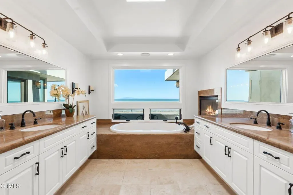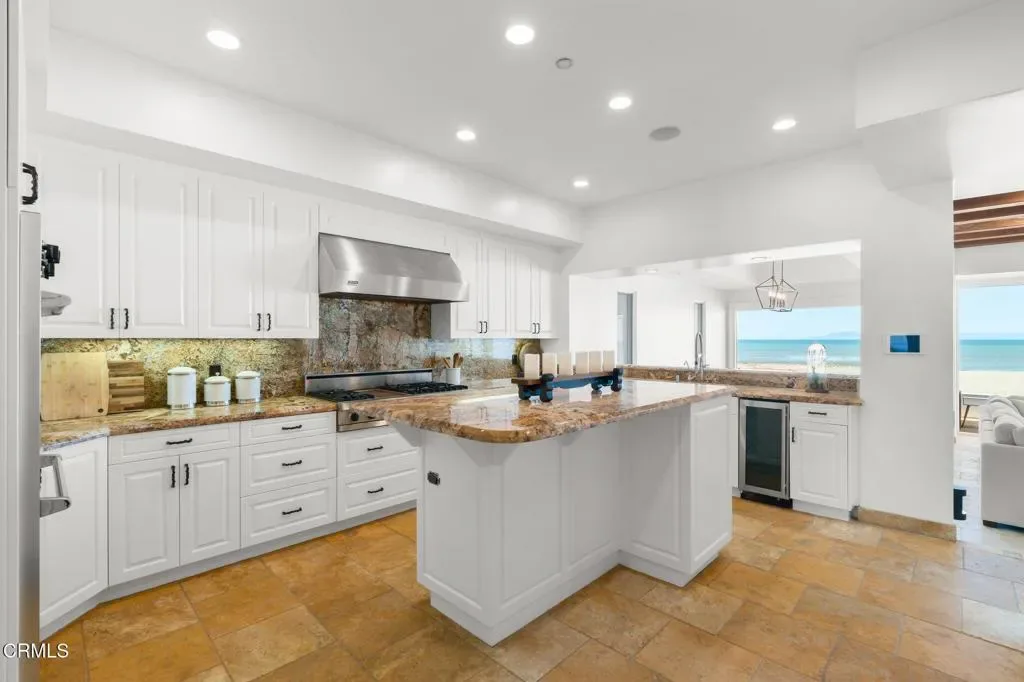 Welcome to your dream Beachfront house, perfectly nestled on the sands of beautiful Mandalay Beach. This gem is situated on a semi-private street, west of the main beachfront road, ensuring less car and foot traffic for a peaceful, beachy vibe. Positioned on a west-facing beach, the house offers breathtaking sunsets every evening. Enjoy panoramic 180-degree views of the ocean, islands, whitewater, and coastline, stretching across the Santa Barbara channel to the Channel Islands and the Ventura coastal foothills. Step into the gourmet kitchen, a chef’s paradise, featuring a center island, a 48-inch Viking cooktop, a Viking double oven, and a built-in Subzero refrigerator. The first level dazzles with a wall of windows that open fully to a spacious deck, providing direct access to the sand and creating an inviting indoor-outdoor living experience. The family room exudes coastal charm with high vaulted beamed ceilings and a cozy fireplace. This level also offers three bedrooms and three baths, along with a den off the kitchen that could serve as an optional sixth bedroom. The second level is dedicated to a generous primary suite, featuring a fireplace and a private deck. The primary bathroom is a sanctuary with a jetted tub, steam shower, fireplace, and, of course, stunning ocean views. For an unforgettable evening, marvel at the starry skies, making it the perfect spot to entertain and relax while savoring the refreshing ocean air. The home boasts 3-zone radiant heating and a rare 6-car garage, ensuring comfort and ample space. This Beachfront beauty offers an unparalleled coastal living experience with spectacular vistas and serene surroundings. Don’t miss your chance to own this slice of paradise! Seller open to seller financing with amiable terms.
