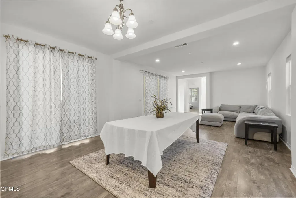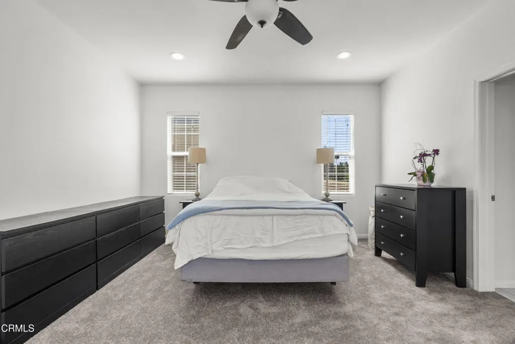 Welcome to 693 Nile River Drive, a beautifully maintained home in the highly desirable Riverpark community of Oxnard. Built in 2017 as one of the final homes in this sought-after neighborhood, this move-in ready 5-bedroom, 3-bath residence offers the perfect blend of modern design, comfort, and functionality. Freshly painted with updated carpeting on the top level, the home features a bright, open-concept layout filled with natural light.The main level offers a welcoming living and dining space with soaring ceilings and seamless flow into the well-appointed kitchen, complete with white cabinetry, quartz countertops, stainless steel appliances, and a large center island with breakfast bar seating -ideal for both everyday living and entertaining. A full bedroom and bathroom on the first floor provide flexible living options for guests, multigenerational needs, or a private home office. The laundry room is also conveniently located on the main level. Sliding glass doors open to a private side yard, offering a low-maintenance outdoor space.Upstairs, you’ll find 3 additional bedrooms, including a versatile loft conversion that functions as a 5th bedroom. The spacious primary suite serves as a relaxing retreat with a walk-in closet, dual vanities, soaking tub, and separate shower.Additional highlights include central air and heat, tankless water heater, recessed lighting with dimmer controls, ample storage, and an attached 2-car garage with overhead storage.Enjoy all that Riverpark has to offer, including parks, sports courts, walking trails, and a vibrant community atmosphere, all just moments from The Collection and newly completed Landing at RiverPark featuring shopping, dining, and entertainment options.