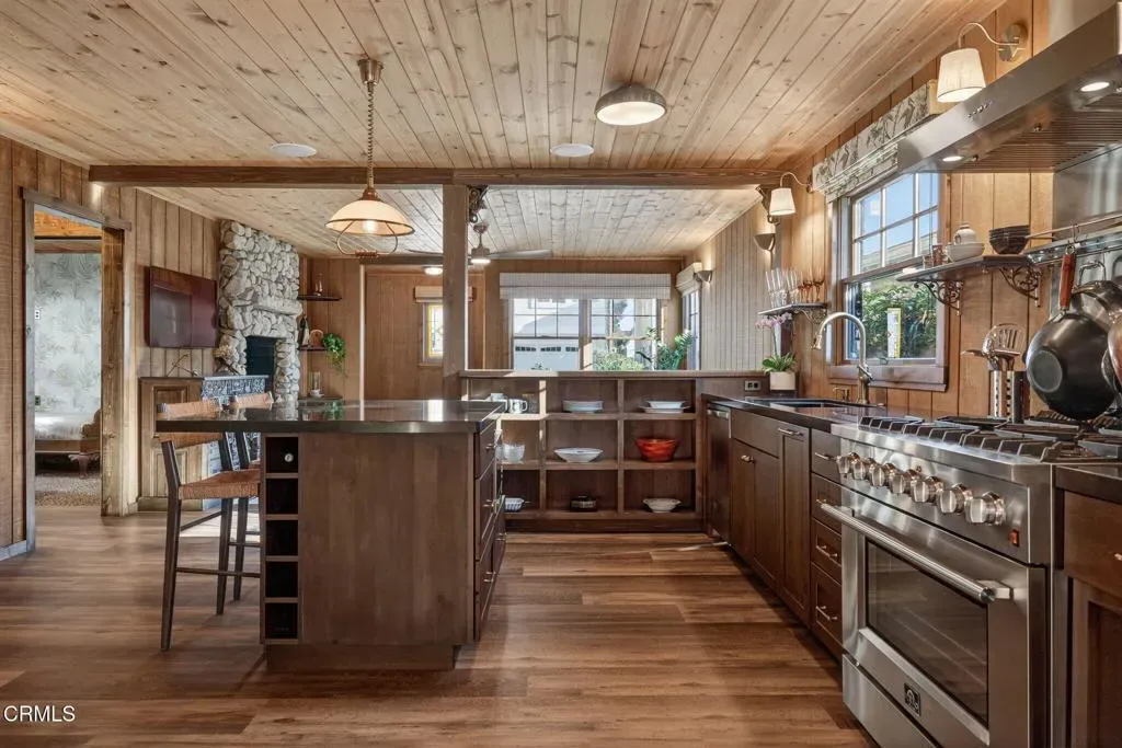 Just moments from the sand in Silver Strand Beach, this beautifully reimagined 3-bedroom, 2-bath single-level home blends the warmth of a coastal cabin with elevated, modern finishes–creating a truly one-of-a-kind beach retreat.Life is short–live where you can hear the ocean, feel the breeze, and come home to something truly special.Set on one of Silver Strand’s most desirable streets, the home captures an effortless beach lifestyle with a design-forward approach. Inside, you’ll find a thoughtfully renovated interior featuring all-new electrical and plumbing, a new HVAC system with air conditioning, a tankless water heater, wide-plank flooring, and rich wood-paneled walls paired with stunning wood-lined ceilings that bring warmth and architectural character throughout.The kitchen is a true centerpiece–designed for both everyday living and entertaining–with custom cabinetry, stone countertops, Newport Brass fixtures, high-end stainless steel appliances, open shelving, and a built-in dining nook. It flows seamlessly into the main living area, where a dramatic river-rock fireplace creates a cozy yet sophisticated focal point.The primary suite offers a custom wood-built closet and direct access to the private outdoor patio, while both bathrooms are finished with stone surfaces and designer fixtures, delivering a spa-like experience. Secondary bedrooms continue the home’s inviting aesthetic with soft textures and natural light.Step outside to a fully transformed outdoor living experience, complete with custom landscaping, curated greenery, updated lighting, irrigation, and engineered drainage. Designed for true coastal living, the private yard features a built-in BBQ with sink, outdoor shower, spa, and multiple seating areas–including a stunning stone fireplace–creating the ultimate setting for entertaining or unwinding after a day at the beach. A gated entry enhances privacy while maintaining a welcoming, resort-like feel.A rare blend of craftsmanship, character, and coastal proximity–live where every day feels like a vacation.