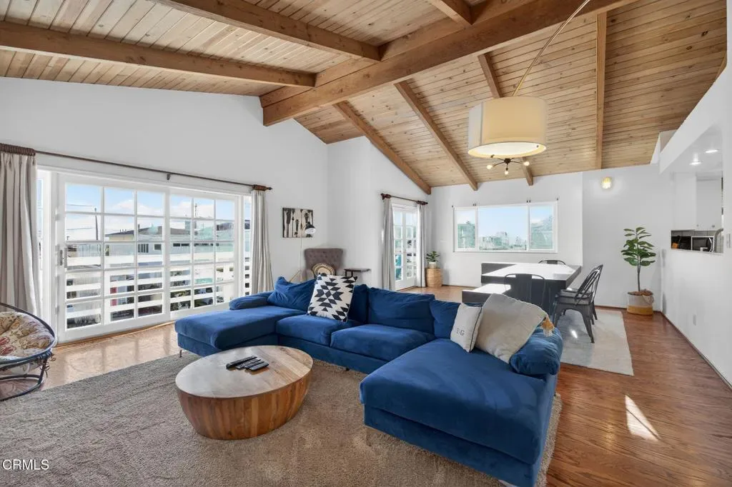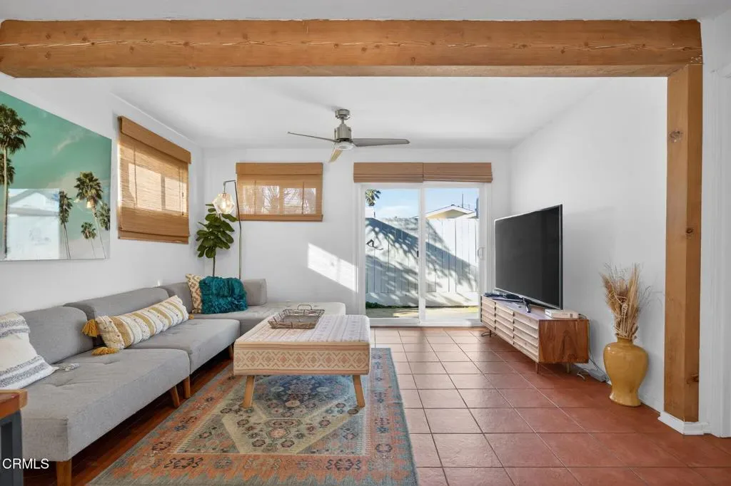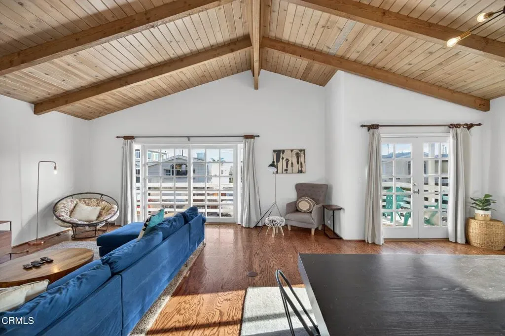 STEPS TO THE BEACH! Ideally located on one of Silver Strand’s most desirable ocean-view streets, this coastal home captures the true essence of beach living.The first level offers a versatile living space with its own living room, one spacious bedroom, a playroom or office that can easily function as a fourth bedroom, a bathroom, and a separate entrance–perfect for guest quarters or multi-generational living.Upstairs, an oversized balcony provides the ideal setting to enjoy the beach community–check the waves, relax with a book, or take in stunning sunsets. Inside, windows galore fill the home with natural light and enhance the beach living experience. Open wood-beam ceilings and a generously sized living room create a warm, inviting space for family time, entertaining, or relaxing. The kitchen overlooks the dining area and deck, offering an excellent open layout ideal for entertaining.This is one of the only streets on the Strand featuring a rare 30-foot easement, allowing for spectacular views and a more open coastal feel. The primary bedroom is spacious and light-filled, complete with a nicely sized walk-in closet and abundant windows. The guest bedroom also features a walk-in closet and excellent natural light.The oversized garage provides ample storage for surfboards, beach chairs, kayaks, and more, while the large driveway offers plenty of parking for guests. Currently operating as a short-term rental, this home presents a fantastic opportunity for personal enjoyment, investment, or both.A must-see beach retreat–come experience the Silver Strand lifestyle at its best. Home comes fully furnished, minus a few personal items, ready for someone to use the day we close escrow. No HOA.