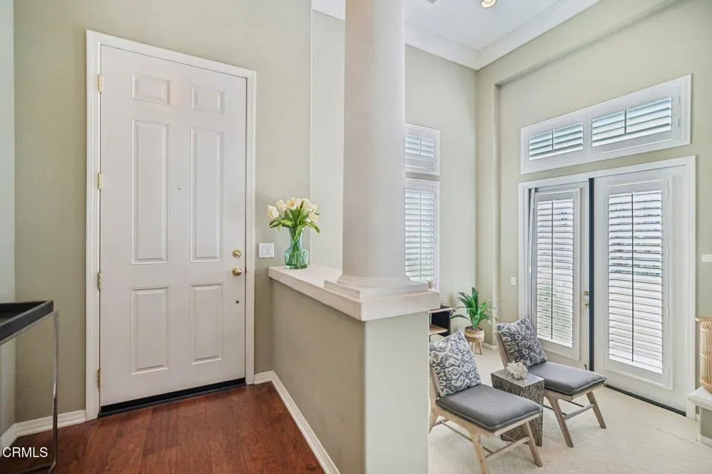 Welcome to your dream coastal townhome nestled within a fabulous gated community! This stunning end unit offers three bedrooms, two and a half bathrooms, and approximately 1,950 square feet of beautifully upgraded living space. Positioned on a quiet corner surrounded by open spaces, you’ll enjoy captivating views of the channel and refreshing coastal breezes from the moment you arrive.Inside, discover a thoughtfully designed kitchen featuring beautiful cabinetry, stainless steel appliances, elegant caesar stone countertops with full backsplash, and a generous island perfect for entertaining. The main level boasts one of the largest living room and den combinations available, complemented by gleaming hardwood floors, crown molding, plantation shutters, and ceiling fans throughout.Double French doors open to a large, inviting patio — a feature unique to this particular floor plan — creating a seamless indoor-outdoor living experience that is perfect for gatherings.Upstairs, the spacious primary bedroom features its own private balcony where stunning views and ocean breezes become your daily luxury. The ensuite bathroom is generously sized with a relaxing Jacuzzi tub, dual vanity sinks, and two walk-in closets. Additional bedrooms include one with custom built-ins, offering smart storage solutions.Residents enjoy a community swimming pool, an attached garage, and proximity to paths along the harbor. Spend your evenings exploring waterfront restaurants, charming shops, and harbor activities just moments from your front door.Schedule your private showing today and experience the coastal lifestyle this home offers!
