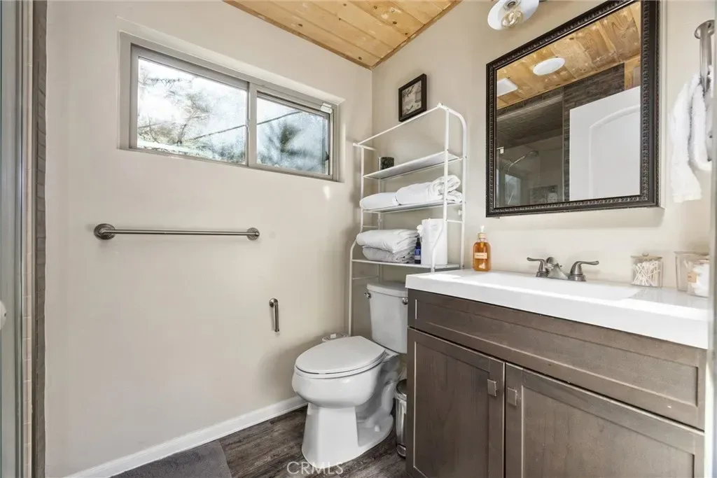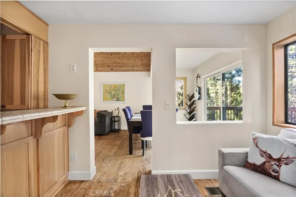 Set among the pines of Pine Mountain Club, 1408 Zermatt Drive offers a private, refined mountain retreat. Oak floors, natural light, and a wood-burning stove anchor the main living space, while the kitchen—finished with hickory cabinetry, stainless appliances, and skylights—flows effortlessly for everyday living and gathering.