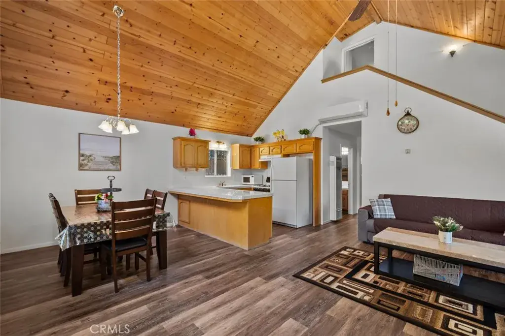 Welcome to 14329 Voltaire Drive, nestled in the heart of Frazier Park! This charming single-family retreat boasts 3 bedrooms and 2 bathrooms spread across a generous 1,214SqFt of living space. Embraced by Pine Mountain Club, a vibrant community, this home grants access to an array of amenities, including a refreshing pool, scenic golf course, tennis courts, biking and hiking trails, and equestrian paths. Residents also enjoy exclusive privileges such as clubhouse access, banquet facilities, a recreation room, and essential security services. During the winter season, the mountains fill up with snow, making this the perfect getaway. Upon entry, a welcoming family room beckons, seamlessly blending with a dining area and spacious living room, offering ample opportunity for personalization. A fireplace in the family room adds to the cozy feeling of the home. Adjacent lies a well-appointed kitchen, complete with modern appliances including a dishwasher, microwave, gas stovetop, and oven, along with ample storage for culinary essentials. Ascend the staircase to the second floor, where a versatile bedroom awaits, primed for customization. This room features a convenient pull-out sofa bed and an adjoining en-suite bathroom, complete with a shower-in tub for added convenience. Returning to the main level, discover two additional bedrooms, each awaiting your personal touch. One of these bedrooms features a cozy bunk bed, ideal for accommodating guests or family members. A conveniently located bathroom on the main floor offers a shower-in tub and serves both bedrooms with ease. There is parking outside of the property by the entry road, as well as a detached garage with storage space and 2 parking spaces. This residence presents an exceptional opportunity for rental investment, or for rental income, coming fully furnished with bedding, dishes, washer, and dryer. It also boasts an array of desirable amenities situated in a prime location. Don’t miss your chance to own this hidden gem of a home!