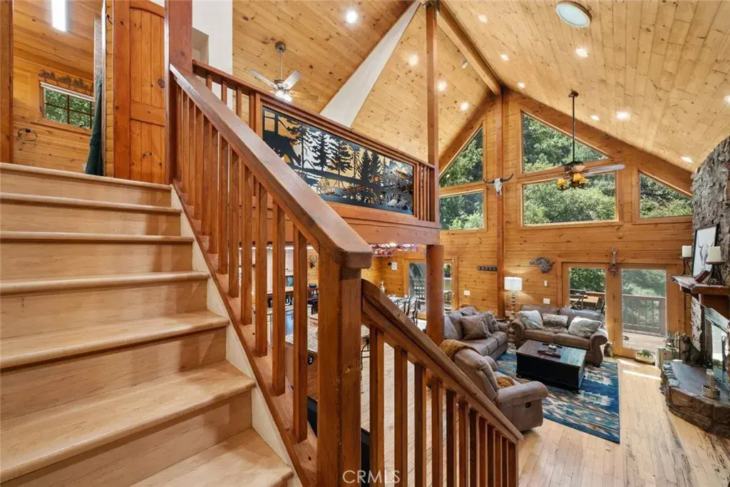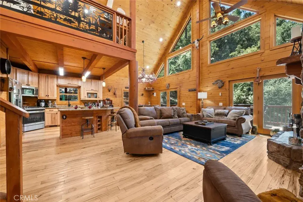Welcome to 1613 Freeman Dr, nestled in the charming city of Pine Mountain Club. This vibrant community boasts a wide range of amenities including a pool and spa, Pickleball courts, barbecue areas, picnic spots, playgrounds, dog parks, a golf course, tennis courts, biking and hiking trails, horse trails, a clubhouse with banquet and meeting facilities, a recreation room, common RV parking, and security services. The cabin-style residence features two stories showcasing mountain beauty. A spacious driveway with RV parking provides ample parking space. There is also an EV charger. The home’s wraparound balcony offers stunning views of the surrounding landscape. Inside, the family room is bright and inviting, with plenty of natural light, a cozy fireplace, and a dining area. The kitchen is well-equipped with essential appliances, including a gas stovetop, oven, microwave, and dishwasher, plus a kitchen island with bar seating. The main floor includes a bathroom with a walk-in shower and two bedrooms, each with a free-standing fireplace. Upstairs, you’ll find a versatile loft space that can be transformed into an additional sleeping area, along with a bedroom that features access to a private balcony. A bonus room serves as another living area and has been converted into an extra bedroom. For recreation, the home includes a spacious game room with chess, billiards, and arcade games, as well as a large laundry room. The additional bathrooms feature shower-in-tub setups. The entire home offers central air conditioning and heating. Don’t miss out on this cabin dream home, complete with a sauna and breathtaking mountain views from the balcony!