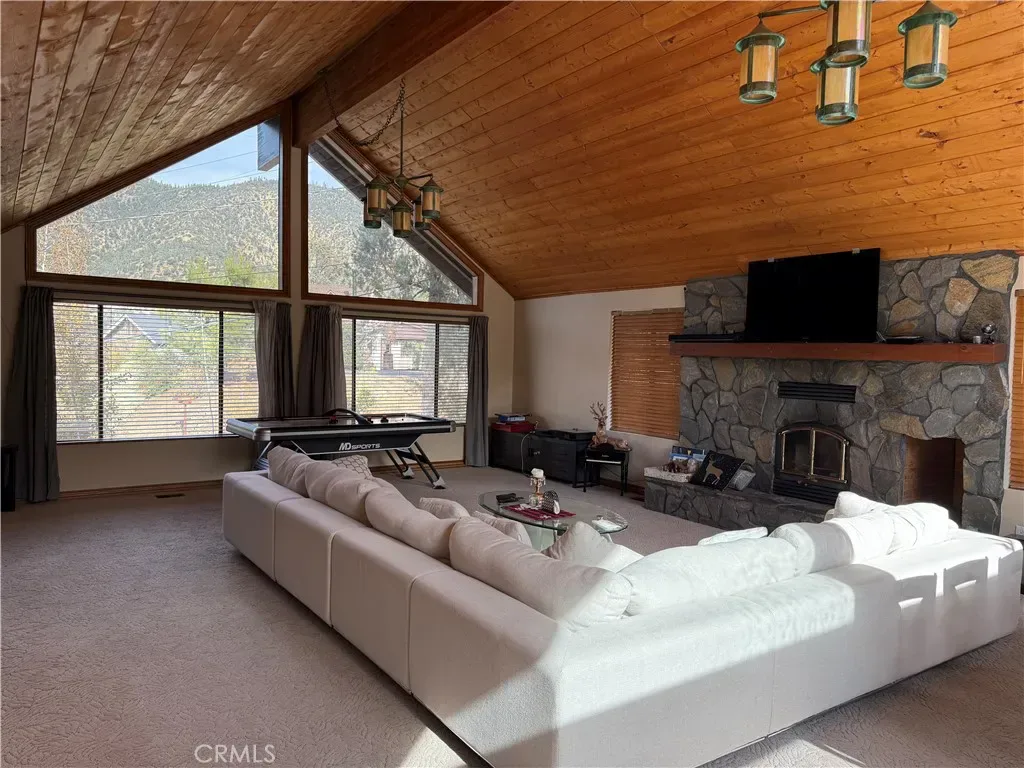 Nestled in the scenic Pine Mountain Club community, this stunning 4-bed, 2-bath, 3,021 sq. ft. mountain retreat features soaring vaulted pine-wood ceilings, a spacious great room with a wood-burning fireplace, and expansive view decks overlooking the surrounding forest. The gourmet kitchen offers granite counters, stainless steel appliances, an island with breakfast bar, and double ovens. The primary suite includes its own glass lookout turret, dual-sink vanity, and jetted soaking tub. With wide stairways, generous natural light, and a serene setting on a 7,688 sq. ft. lot, this home blends rustic charm with modern comfort—perfect for full-time living or a peaceful getaway.