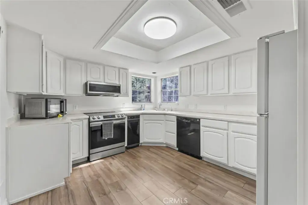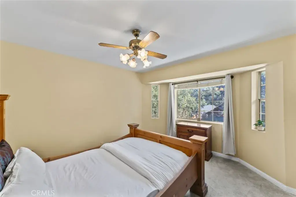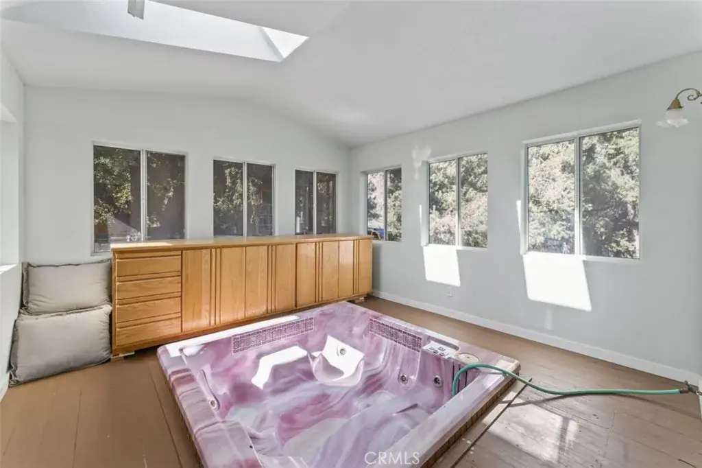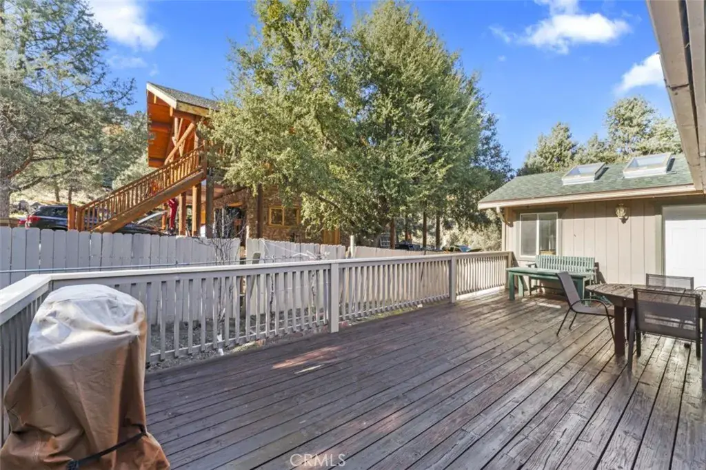 Set on a corner lot in Pine Mountain Club, this well-cared-for home offers three bedrooms, an office, three bathrooms, and spa room with thoughtful updates throughout. The main living area is located on the upper level and features a comfortable, functional layout highlighted by a wood-burning stove set on a classic rock hearth. The first floor includes approximately 1,830 square feet of living space. The lower level provides added flexibility with a finished garage, a bonus room well suited for an office or creative space, a bathroom, and a generous laundry room, contributing approximately 278 square feet of additional usable space. Step outside to a spacious, recently stained deck overlooking a nicely landscaped yard with a mix of trees and shrubs, along with a usable side yard on a mostly level lot, ideal for enjoying the mountain setting. The kitchen offers a pantry, laminate flooring, and a range installed in 2024. Recent improvements include a roof replaced in October 2023 with a 30-year warranty, a water treatment system installed in 2023, garage door openers and water heater installed in 2026, central air conditioning, and a garden shed for extra storage. With its practical layout, recent upgrades, and inviting outdoor spaces, this home offers a comfortable and welcoming retreat in Pine Mountain Club.