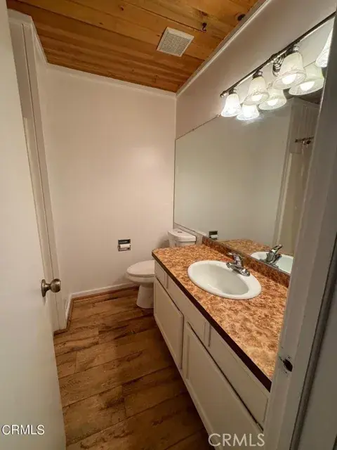 This charming single family residence features 3 bedrooms, 1.5 bathrooms, cover decks, laminate flooring, dual pane windows and boats a cozy 960sqft layout on a spacious 9,844sqft lot. Build in 1980, this single story cabin offers a private back yard, ample parking, and is nestled in a peaceful neighborhood. Conveniently located near main thoroughfares and very close to the village center. Experience the amenities Pine Mountain Club has to offer in this delightful property.