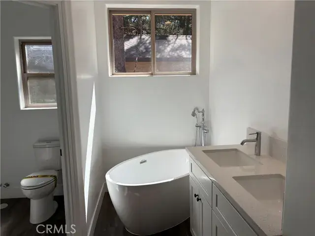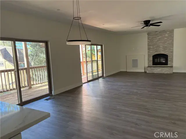 Just Built! Unique contemporary custom design home featuring multi-use spaces in addition to traditional bedrooms. Open floor plan w/Great room, fireplace, three sets of sliding glass doors that open out to a covered deck that extends the entire width of house, all electric kitchen w/island, marble countertops, plenty of custom cabinets & counter space as well as a walk-in pantry. Front facing room could be a den/office or bedroom. Hallway full bath w/tub, tile & vanity. Adjacent Laundry closet w/cabinets. Entry level has durable, easy care quality vinyl plank flooring throughout. 2nd level features three bedrooms: one facing back, another one & front facing Master suite. Master bedroom has high ceilings & windows as well it’s own private covered decks w/mountain & forest views. Master bath features a lg. walk-in shower, tub, double sink vanity & private toilet. It’s pre-plumbed for a bidet. Walk-in closet.Across from Master suite are 3 rear facing rooms, each w/sliding glass doors that open to another covered rear deck that also extends the entire width of the house: One bedroom, two multi-use rooms: Middle room that could be a lounge & play area & Corner room that could be used as a media room, 2nd living room or 2nd master bedroom as there is an entry door into the hallway bath w/shower & vanity. 3rd front-facing bedroom as well.