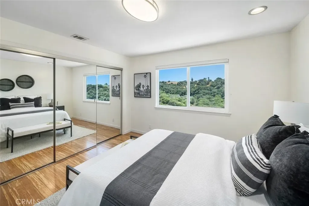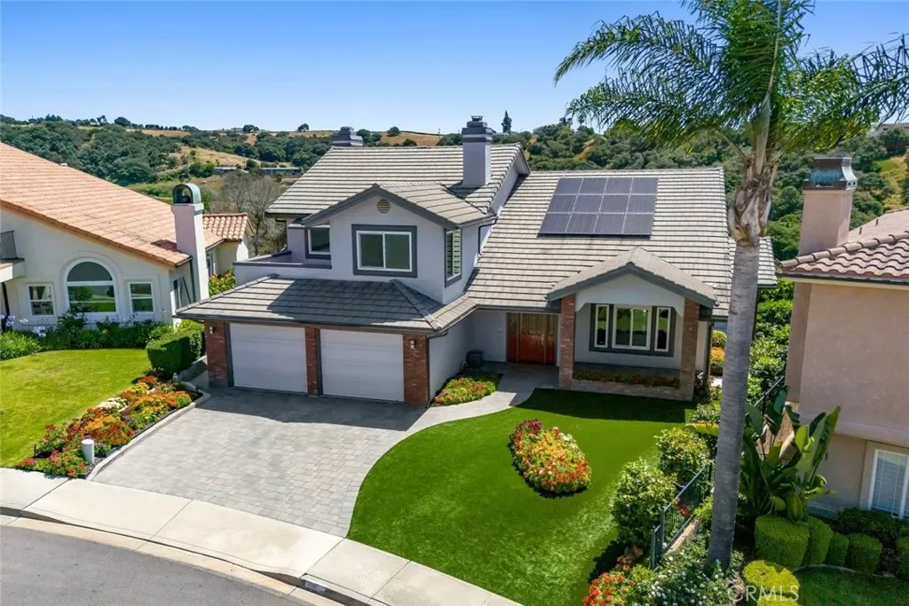 Step outside to a spacious deck ideal for entertaining or simply enjoying the serene setting, with views stretching from rolling canyons to the Pacific Ocean. The front yard features low-maintenance turf, while the property also includes owned solar for efficiency and sustainability.