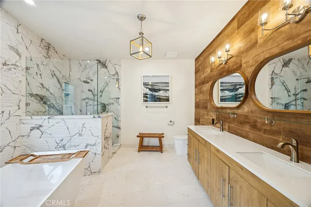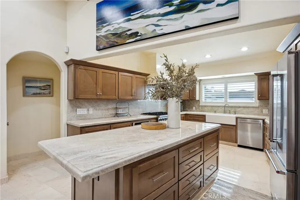 Located in the prestigious Sunset Palisades of Shell Beach, this exquisitely remodeled 4 bedroom, 3.5 bath residence offers 2,814 square feet of refined coastal luxury with captivating ocean views. Designed to elevate everyday living, the home showcases sweeping vistas from the living room, upper decks, and a private fourth bedroom suite. Thoughtfully reimagined with high-end finishes throughout, the home welcomes you with an inviting entry that opens to the living room just a few steps up. Here, wood plank ceilings, plantation shutters, a cozy fireplace, and ocean views create a warm yet sophisticated ambiance. The adjacent dining area and well-appointed kitchen provide an ideal space for entertaining, featuring a 6-burner Viking range with hood, center island, walk-in pantry, and abundant counter and cabinet space. The main-level primary suite offers a tranquil retreat, complete with a luxurious bath featuring a soaking tub, separate shower, and direct access to a private side patio. Two additional bedrooms, a full bath, powder room, and laundry room complete the main level. Upstairs, a view deck and the private fourth bedroom suite with en-suite bath and ocean views offer exceptional flexibility—ideal as a guest retreat, family room, or second primary suite. Situated on a beautifully manicured corner lot, the home is framed by lush front and side yards that enhance privacy and curb appeal. Ideally located near scenic hiking and biking trails, premier resorts, acclaimed restaurants, and boutique shopping, this exceptional property is perfectly suited as a full-time residence or an idyllic coastal vacation getaway.
