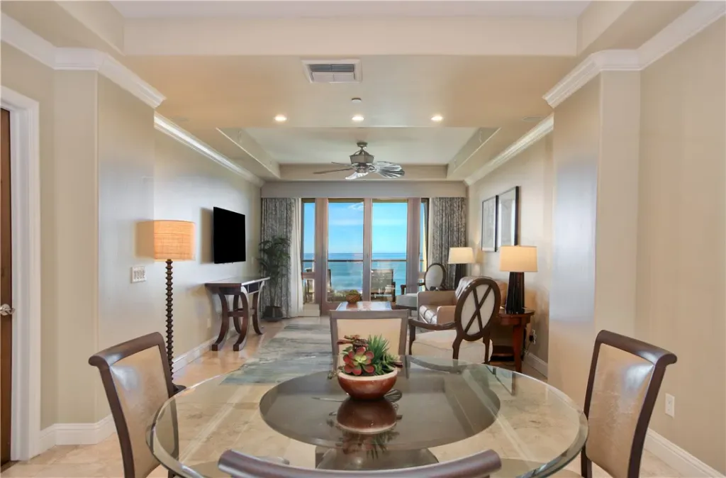 Set above the Pacific on the bluffs of Shell Beach, this oceanfront residence at Dolphin Bay Resort & Spa presents a rare expression of understated coastal luxury. Designed for effortless living, the single-level two-bedroom, two-bath home captures sweeping, unobstructed ocean views and a seamless connection to the outdoors. Interiors are calm, refined, and intentionally simple. Travertine floors, custom wood cabinetry, and a thoughtfully open floor plan create an atmosphere of quiet elegance. The kitchen is both streamlined and functional, appointed with new granite countertops and professional-grade stainless steel appliances. Living and dining spaces open gracefully to a covered oceanfront terrace through expansive sliding glass doors, where the horizon and sound of the sea become the defining elements of daily life. The primary suite offers privacy and comfort, featuring a spa-inspired bath with dual vanities, soaking tub, walk-in shower, and generous storage. A well-appointed second bedroom and full bath provide inviting accommodations for guests. Ownership includes access to Dolphin Bay’s Four Diamond resort amenities, including an oceanfront heated pool and spa, full-service spa, fitness center, concierge services, valet parking, fire pits, BBQ areas, and dining at the acclaimed Lido Restaurant. Elevator access, underground parking, and optional participation in the resort rental program ensure ease of ownership and flexibility of use. Quiet luxury. An iconic setting. A rare oceanfront offering on California’s Central Coast, equally suited as a primary residence, refined coastal retreat, or income-producing investment.