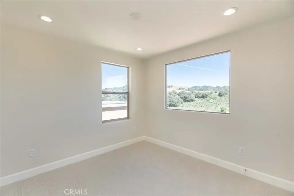 This immaculate 2023-built home offers modern coastal living perfectly located just minutes from Pismo Beach and Edna Valley’s wine country. Thoughtfully designed with a contemporary aesthetic, the home features high-end finishes including quartz countertops, LVP flooring, stainless steel appliances, and soft-close, shaker style cabinetry. Soaring ceilings and an open-concept layout create a bright, airy atmosphere, complemented by panoramic canyon views and peekaboo ocean vistas. Upon entry, a flight of stairs leads to the main living level, where a spacious great room seamlessly connects to the expansive and sleek, modern kitchen. A gas fireplace adds warmth and ambiance, while a glass slider opens to a front balcony, perfect for taking in the surrounding scenery while enjoying your morning coffee. Just steps away, the generously sized primary suite provides a peaceful retreat, complete with a spacious closet and a well-appointed bathroom. Conveniently this level also includes a powder room for guests and access to a sun-soaked deck, ideal for al fresco dining and entertaining. Upstairs, you’ll find two additional bedrooms, a full bathroom, and a dedicated laundry space, offering both comfort and functionality. Additional highlights include air conditioning, ample storage throughout and parking for multiple vehicles.