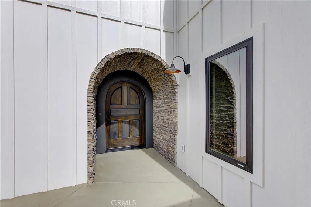 In addition to this elegant, crafted home, has a wraparound porch that extends from the front door all around the front of the house. It features custom railings with glass retaining panels. For those evenings or early mornings when you want to enjoy an oasis-like atmosphere, the backyard presents a refined outdoor fireplace with plenty of seating and panoramic views of the Central Coast and foothills.