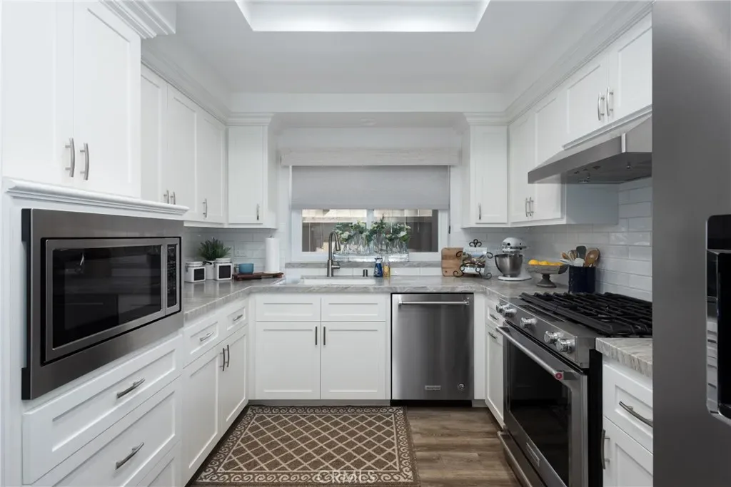 Single Level Living In the Heart of Downtown Pismo Beach!! This wonderfully remodeled condominium is move-in ready and will impress even the most discerning buyer with the high-end finishes and trims throughout. Walk into the front door to a luxurious open floor plan, including a built-in work space that doubles as a perfect dry bar featuring a Silhouette under-cabinet beverage center, and a private sliding glass door that opens up to your personal, gated backyard. The kitchen boasts top-of-the-line Kitchen-Aid appliances throughout and stunning satin granite countertops.