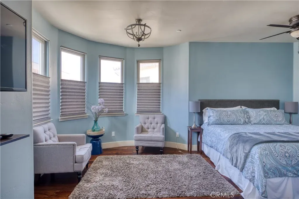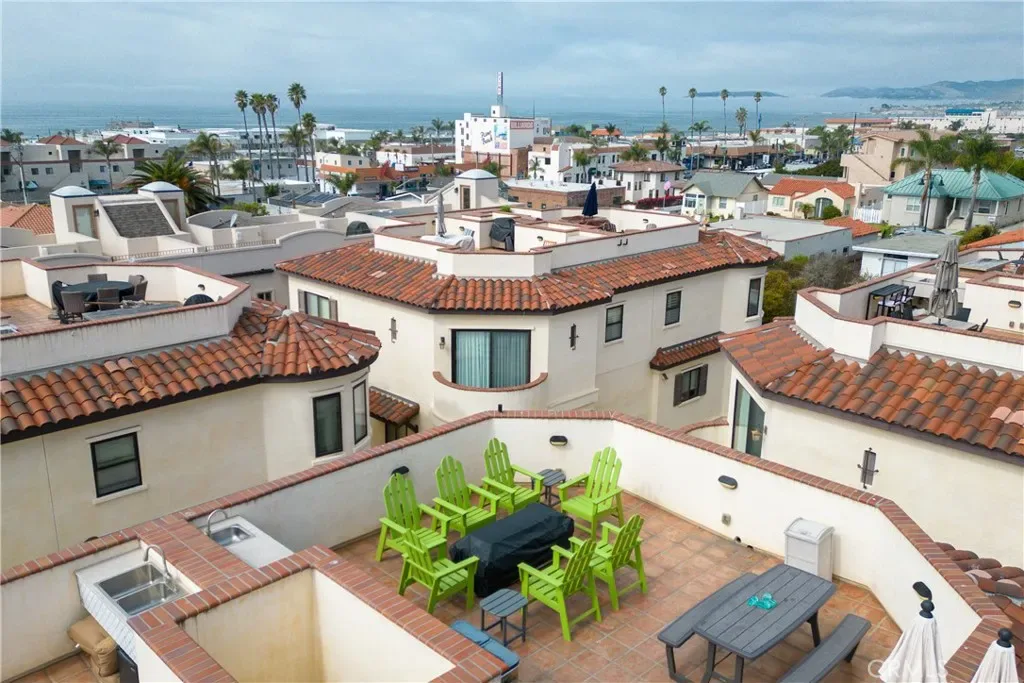 Stunning Mediterranean-style condo just two blocks from the sand, pier, and vibrant downtown dining and shopping. Offering the flexibility of full-time coastal living, a luxurious vacation retreat, or an income-producing investment, this property is currently being utilized as a licensed short term vacation rental. The 3-bedroom, 3.5-bath 1769 sq ft residence includes a private 1-bedroom, 1-bath Casita with kitchenette and separate entrance—ideal for guests or extended family stays. From the spacious 2-car garage, a private staircase leads to the main living level, while a separate staircase from the street provides additional access for convenience. Inside, wood floors flow throughout the open-concept living and dining areas, complemented by a chef’s kitchen featuring quartz counters, stainless steel appliances, and high-end finishes. A powder room completes this level. Upstairs, the luxurious primary suite offers a serene sitting area and spa-like en-suite bath with dual vanities and a large walk-in shower. A second bedroom with full bath and a conveniently located laundry room complete this floor. The ground-level Casita offers flexibility with its own access from the garage and the private staircase. Crowning the home, an expansive rooftop deck captures panoramic ocean views—perfect for entertaining or savoring spectacular sunsets. Combining elegant finishes with modern convenience, this property embodies the very best of upscale beachside living with exceptional income potential.