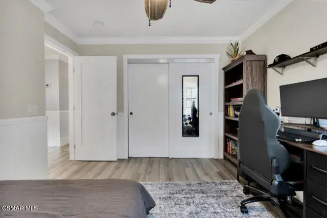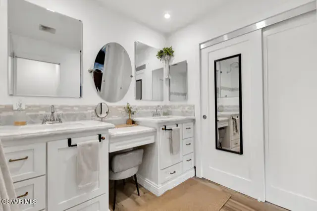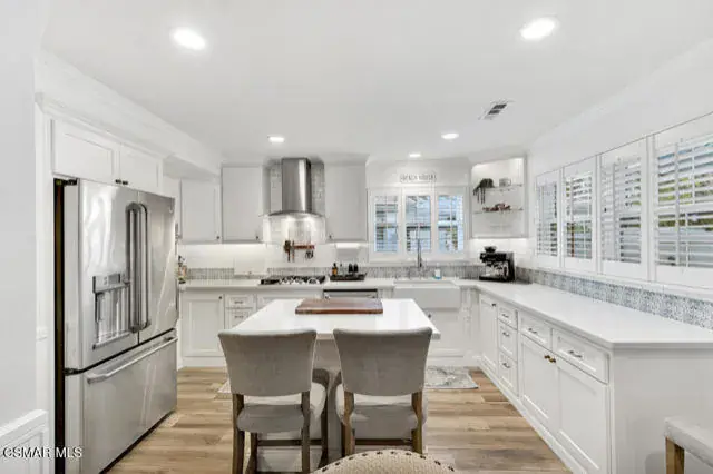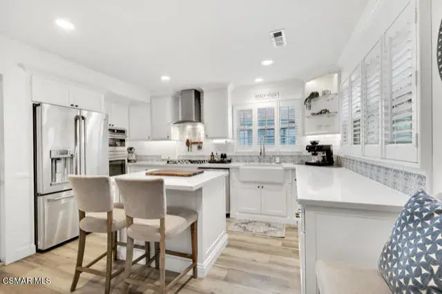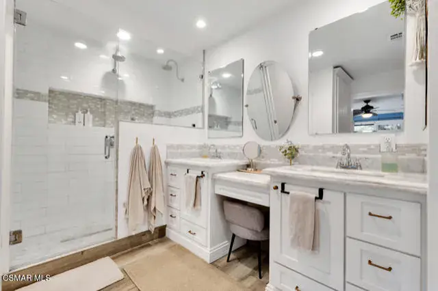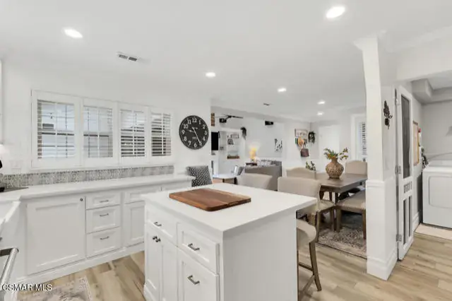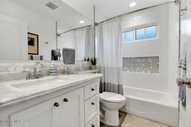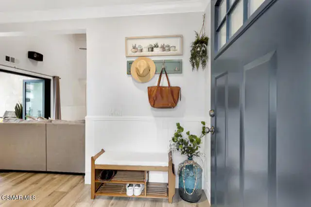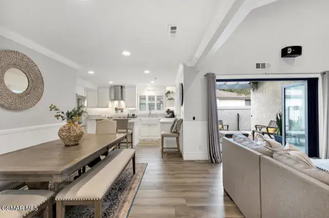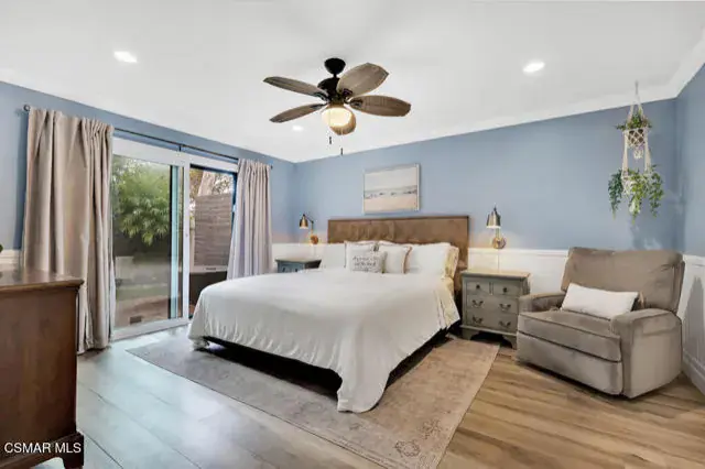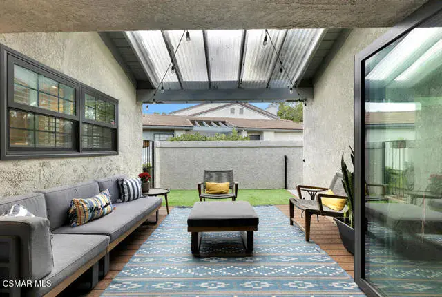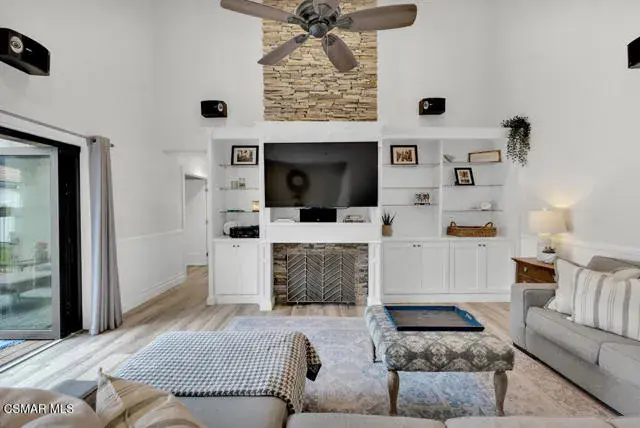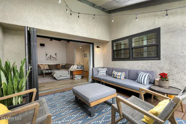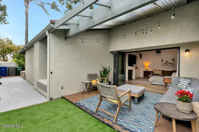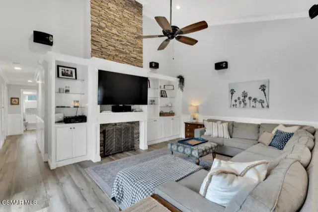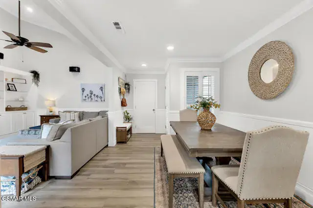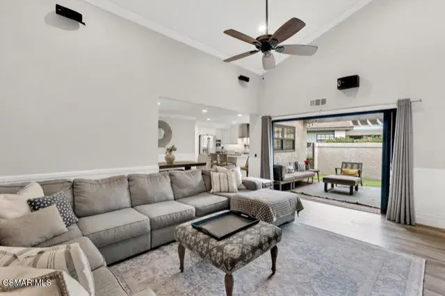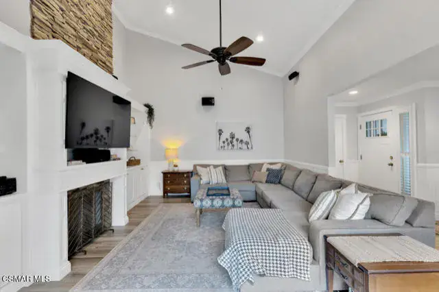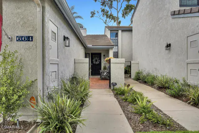 Welcome to 664 Beachport Dr. – an ABSOLUTELY STUNNING single-level, 3-bed, 2 bath, 1,417 sq ft end-unit townhome, just blocks from the ocean, in desirable Port Hueneme. From the delightful curb appeal with stamped concrete entry to the light-filled interior with vaulted ceilings, this gem impresses at every turn. The open-concept floorplan features wood-like ceramic tile, recessed lighting, crown molding and dual-pane windows throughout. The family room boasts a cozy flagstone-enhanced fireplace, custom built-in cabinets and a panoramic accordion-style door that opens to the private patio/backyard. Enjoy the contemporary kitchen showcasing quartz counters, stainless steel appliances, an apron-front sink, modern white shaker cabinetry as well as a convenient center island. Retreat to the generous primary bedroom with a walk-in closet and spa-like ensuite bathroom, complete with a barn door and crystallized onyx dual vanity. Two secondary bedrooms with stylish ceiling fans share a beautifully updated full bath. Additional highlights include an indoor laundry area and direct access to the attached 2-car garage. Upgrades continue with Bali composite window shutters, tankless water heater and a thoughtfully landscaped backyard. Centrally located near shopping, dining, parks, schools and just minutes to the beach–this home truly has it all. Welcome home!