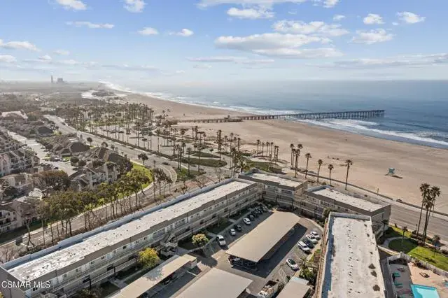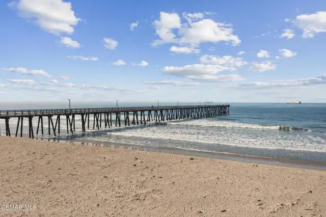 WOW! Imagine living at the beach or owning a vacation home, with ocean views! Turnkey! Located in the desirable gated Surfside 1 community literally across from Port Hueneme beach and pier. Enjoy the ocean breeze on one of your 2 balconies! This 2-bedroom condo boasts recess lighting, ceiling fans, an inside laundry area with a stackable washer/dryer, and gorgeous ocean views from your balconies! Updated kitchen with quartz countertop, custom cabinets, stainless steel appliances, and spacious bar area open to the family room. The primary suite has a slider to your private balcony to enjoy the ambience of the waves crashing on the beautiful beach or to enjoy the magnificent sunset. The 2nd bedroom has a direct access door for entry and exit making it convenient for a guest or roommate. The Surfside 1 community offers two outdoor pools and spas, a club house, 10 electric car charging stations, plenty of guest parking and grass areas. HOA dues cover water, sewer and trash services. Close to Naval base Port Hueneme and Point Mugu, shopping, restaurants, Oxnard pier, Ventura pier and many local beaches; plus easy access to the 101 freeway. Don’t miss your chance to own beach property at a reasonable price.