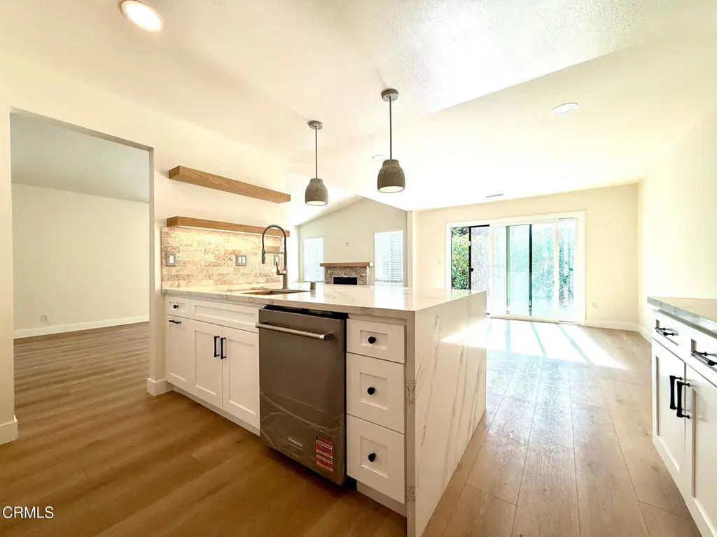 Welcome to Surfside Village!Just steps from the sand and surf, this beautifully remodeled single-story beach home offers the perfect blend of modern comfort and coastal charm. Every inch of this home has been updated from floor to ceiling — featuring new dual-pane windows, a sliding patio door, and luxury vinyl plank flooring throughout.The bright and open living room includes recessed lighting and a cozy gas fireplace, flowing seamlessly into the dining area and the fully remodeled kitchen. You’ll love cooking and entertaining with the kitchen’s large peninsula, quartz countertops, shaker cabinets, and elegant travertine backsplash.The primary suite offers a peaceful retreat with a spacious walk-in closet featuring built-in organizers, dual sinks, and a large custom shower. Two additional bedrooms also have walk-in closets, and all three rooms are equipped with ceiling fans for comfort. The den area provides additional living space and includes an atrium plus an interior laundry closet with washer and dryer hookups, and access to a two-car garage and driveway parking for two more vehicles.Step outside to enjoy a private backyard with a concrete patio and mature trees offering natural shade and privacy — perfect for relaxing or hosting outdoor gatherings. Located in the sought-after Surfside Village community, this home offers the ultimate beachside lifestyle — close to the pier, walking paths, and local dining. Close to Naval base.