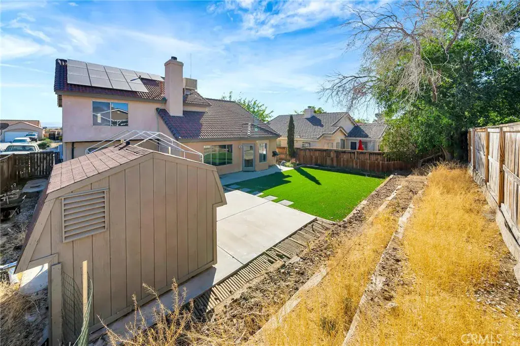 Beautiful Home in a Desirable Rosamond Neighborhood! This Spacious 4-Bedroom, 2.5-Bath Home Offers an Open Floor Plan with Fresh Interior Paint and a Welcoming Atmosphere. The Main Floor Features a Generous Family Room and a Convenient Downstairs Bedroom Perfect for Guests or a Home Office. The Large Kitchen Provides Ample Space for Cooking and Entertaining. Upstairs, You’ll Find Three Additional Bedrooms with Ceiling Fans and Oversized Closets, Including a Spacious Primary Suite with a Walk-In Closet. Enjoy the Outdoors in the Expansive Backyard, Complete with Low-Maintenance Turf and a Large Storage Shed. This Home also Features Solar Panels for Energy Efficiency. Additional Highlights Include an Attached 2-Car Garage and Laundry Area and Close Proximity to Freeway Access Ideal for Commuters.