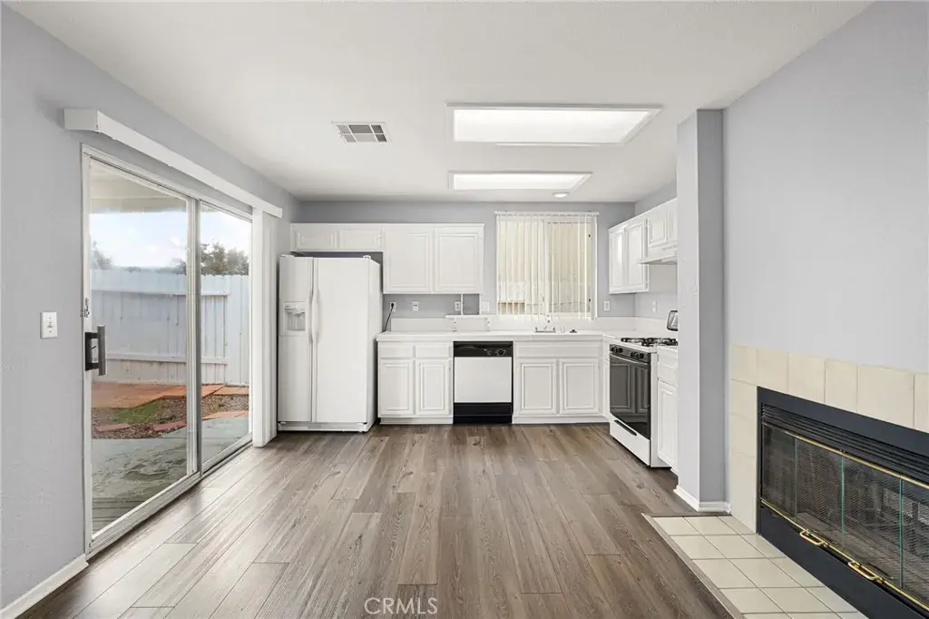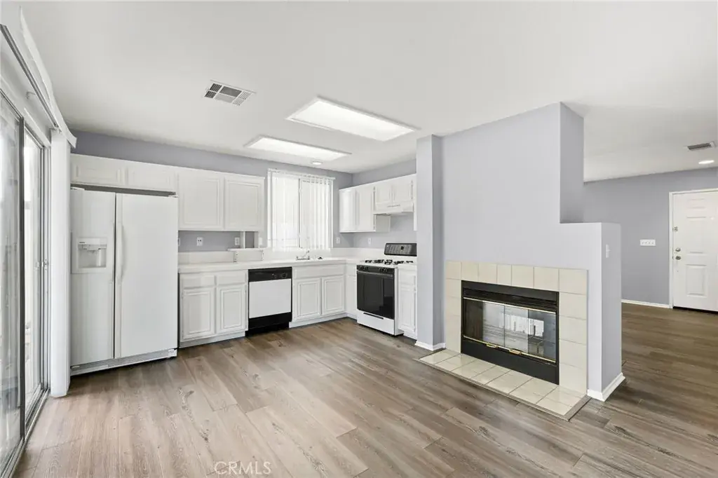 Located in a sought-after community just steps from Westpark Elementary School, this charming residence offers wonderful curb appeal with a concrete pathway leading to a welcoming front porch. Upon entry, you are greeted by a spacious living room highlighted by a dual-sided fireplace—perfect for creating a warm and inviting atmosphere. The adjacent dining area seamlessly flows into the open-concept kitchen, complete with classic wood cabinetry and tile countertops. The family chef will appreciate preparing holiday meals while enjoying views of the rear yard and the covered patio. Nothing beats savoring the perfect meal by the glow of your fireplace—this home truly warms the heart. Down the hallway are the spacious secondary bedrooms, each offering wall-to-wall closet storage and easy access to the full hallway bathroom. The primary bedroom features a generous walk-in closet and its own private full bathroom for added comfort and convenience. The indoor laundry room includes side-by-side appliances and overhead shelving, with direct interior access to the attached 2-car garage featuring painted concrete finished floors. Outside, you’ll find designed drought-tolerant landscaping with rock accents, creating a low-maintenance and serene outdoor environment. The covered patio is an ideal space for hosting your holiday festivities and welcoming in the new year. This home offers comfort, charm, and a fantastic location—truly a wonderful opportunity.