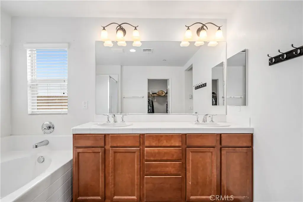 Upstairs you’ll find a spacious primary suite with a walk-in closet and en-suite bath featuring dual sinks, a large vanity, soaking tub, and separate shower. Three additional bedrooms upstairs are all generous in size and share a well-designed hall bath with dual sinks and a separate tub/shower combination.