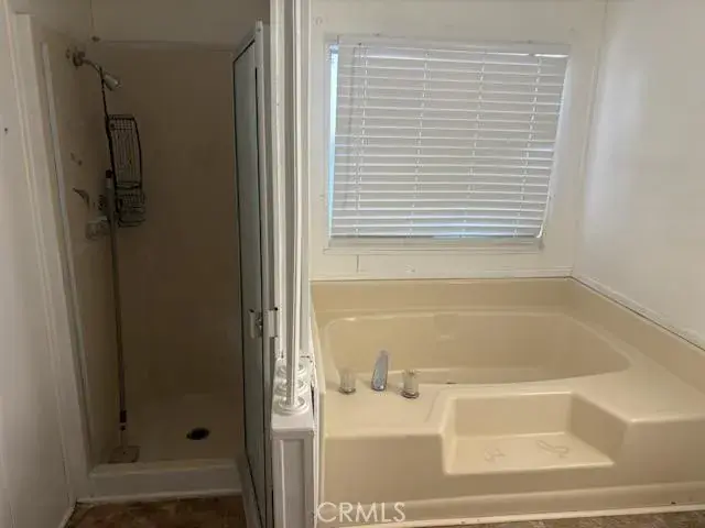 The master bedroom has a walk-in closet with space for a full bedroom set & desk area. It has a private bath with a garden tub + glass shower.