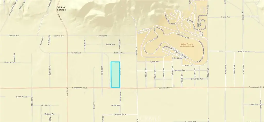 Excellent 29.55 acre parcel located on paved Rosamond Blvd near Willow Springs International Raceway in Rosamond, CA. Located on Rosamond Blvd between 82nd St W and 83rd St W this parcel has electricity fronting the property. Lots of potential with this large mostly flat lot. Hold for future use, investment, or develop and use with current county zoning.